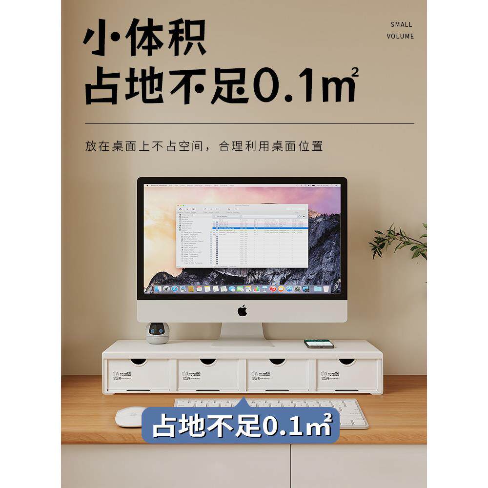 电脑增高架子带抽屉办公室台式屏幕抬高支架加厚桌面收纳盒免安装