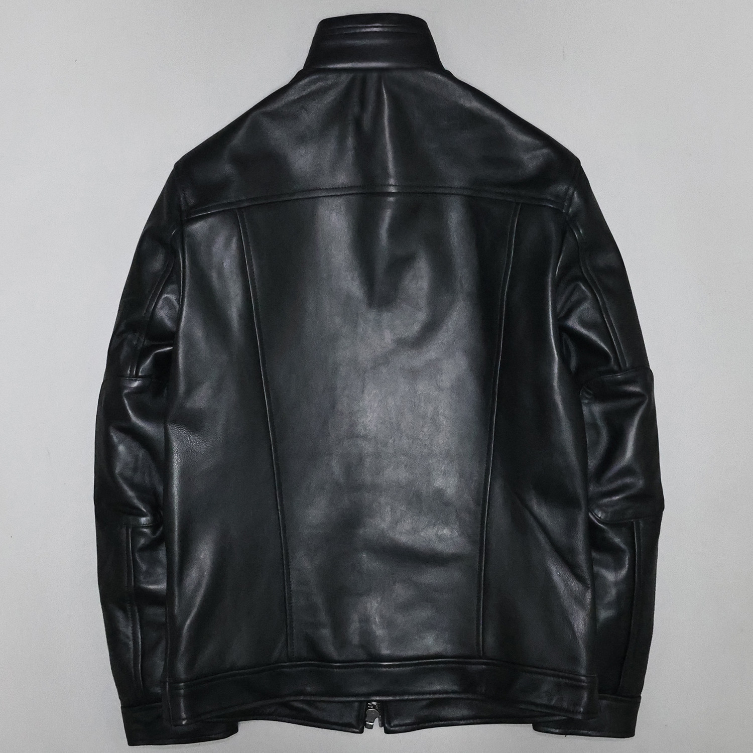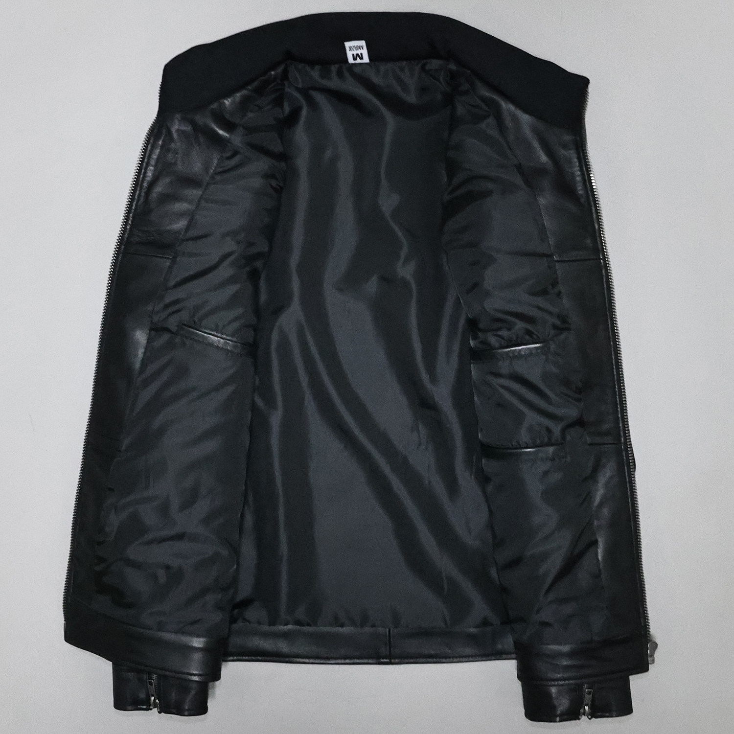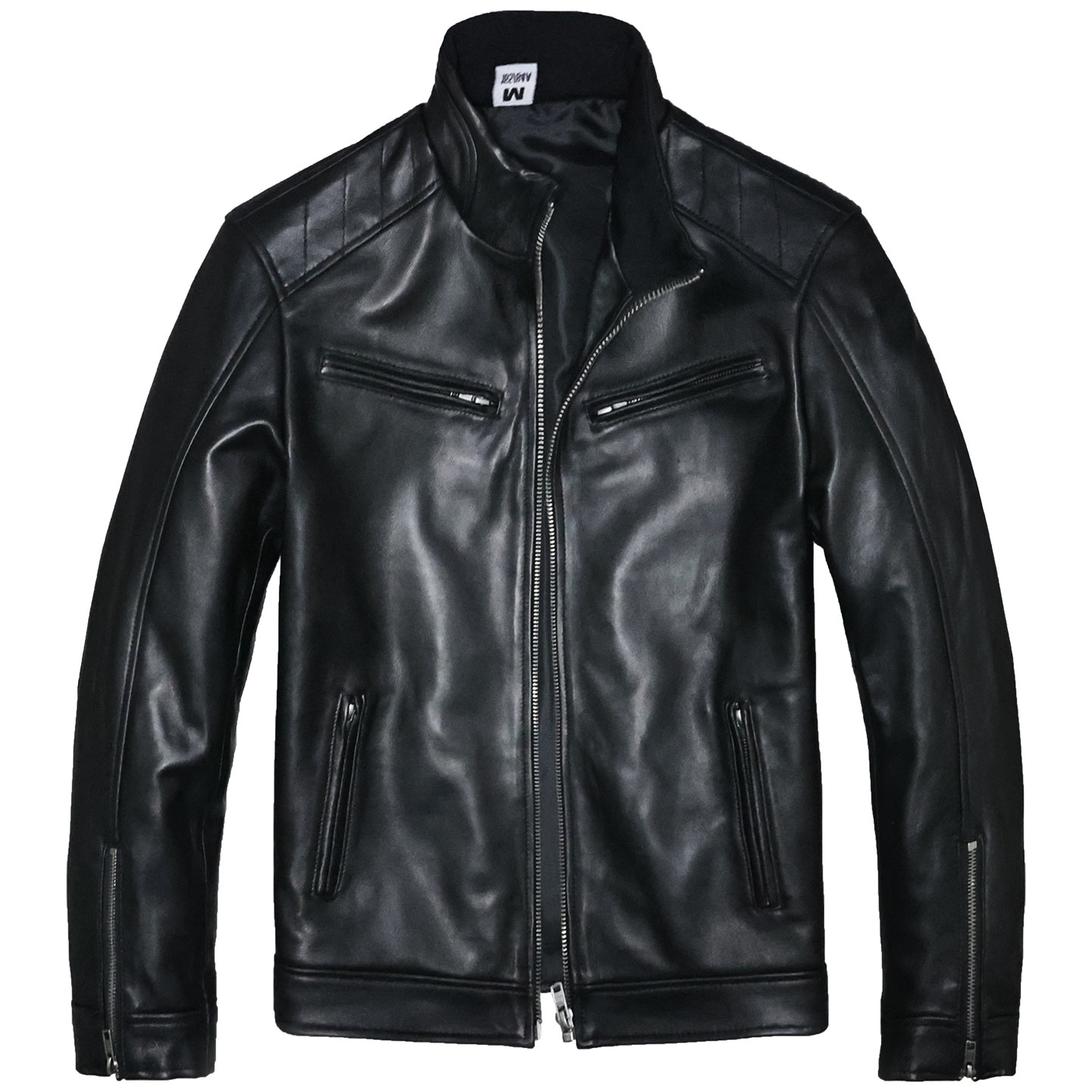 头层绵羊真皮皮衣男修身短款青年简约立领多兜商务机车夹克外套尘