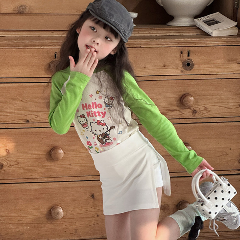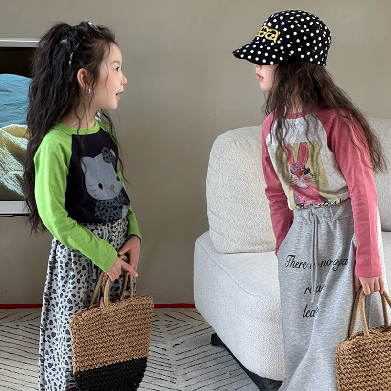 女童巨好看美式插肩袖长袖t恤纯棉春季薄款2026新款儿童女宝上衣