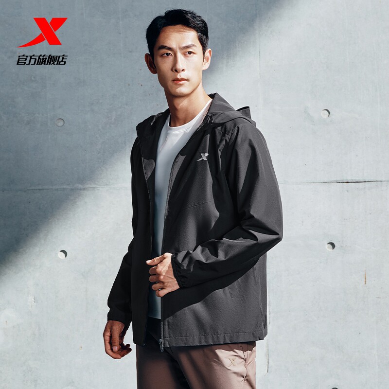 特步外套男2025秋冬新款户外冲锋防泼水风衣男款运动防风夹克男士