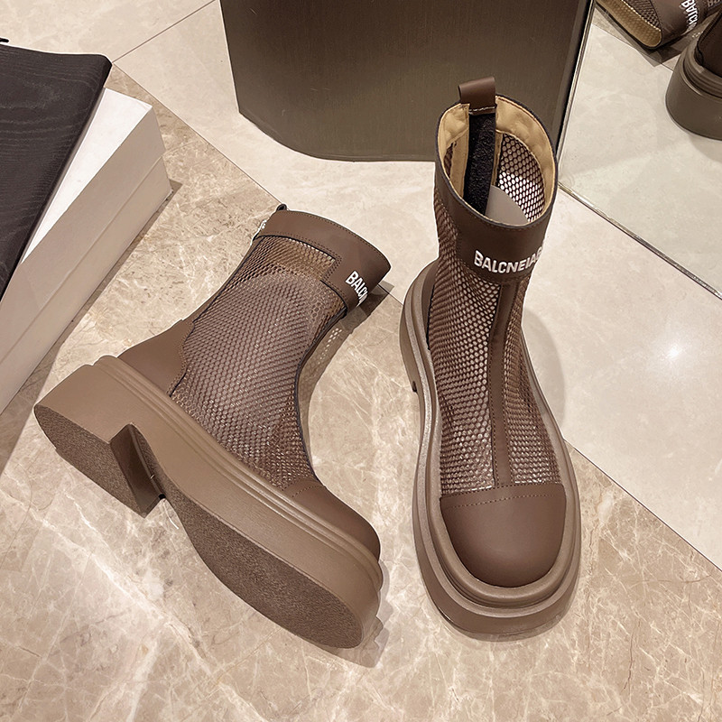镂空马丁靴女夏2026新款夏季薄款透气网面凉靴厚底小个子增高短靴