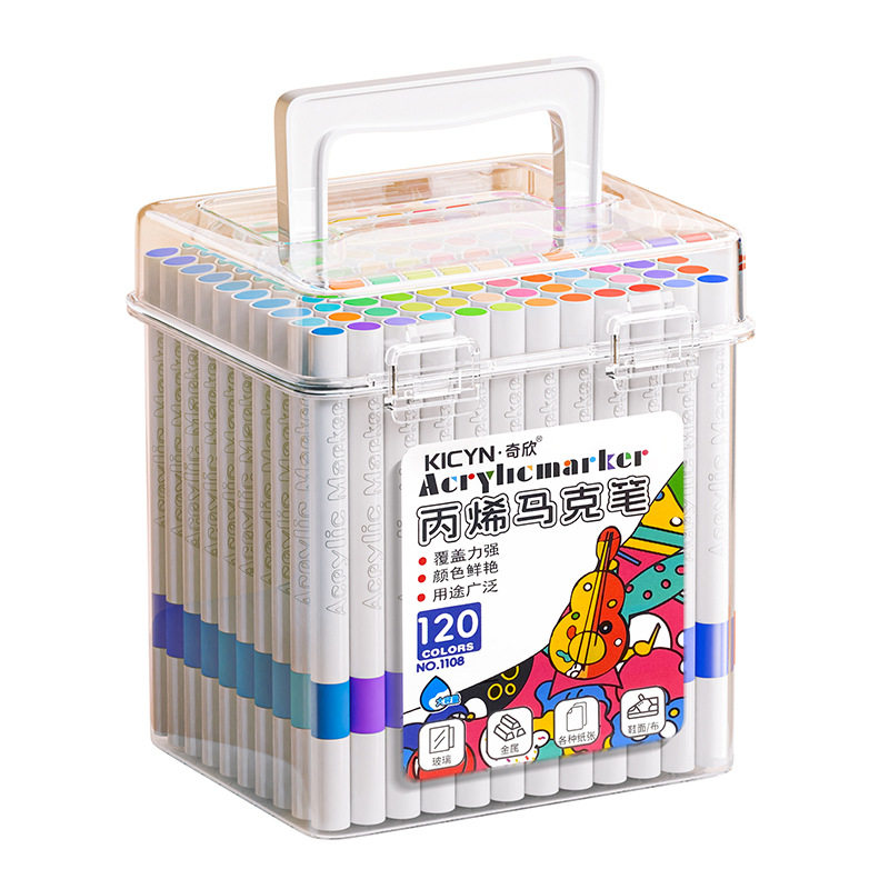 油性丙烯马克笔儿童专用软头不透色可叠色小学生美术双头画笔手绘