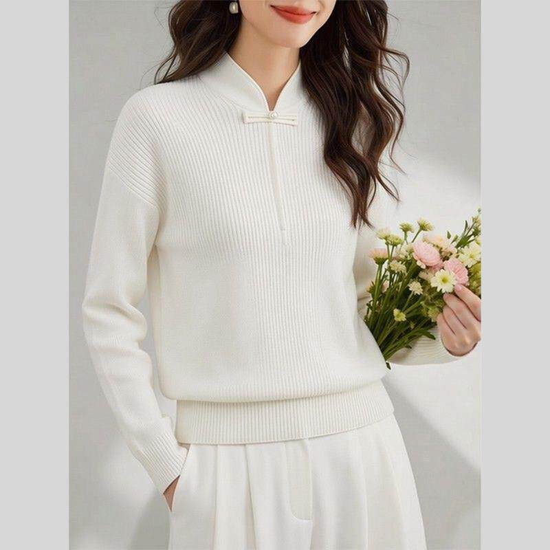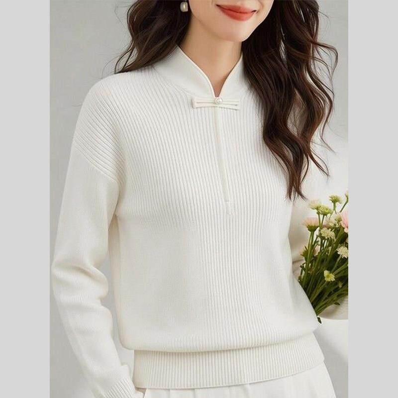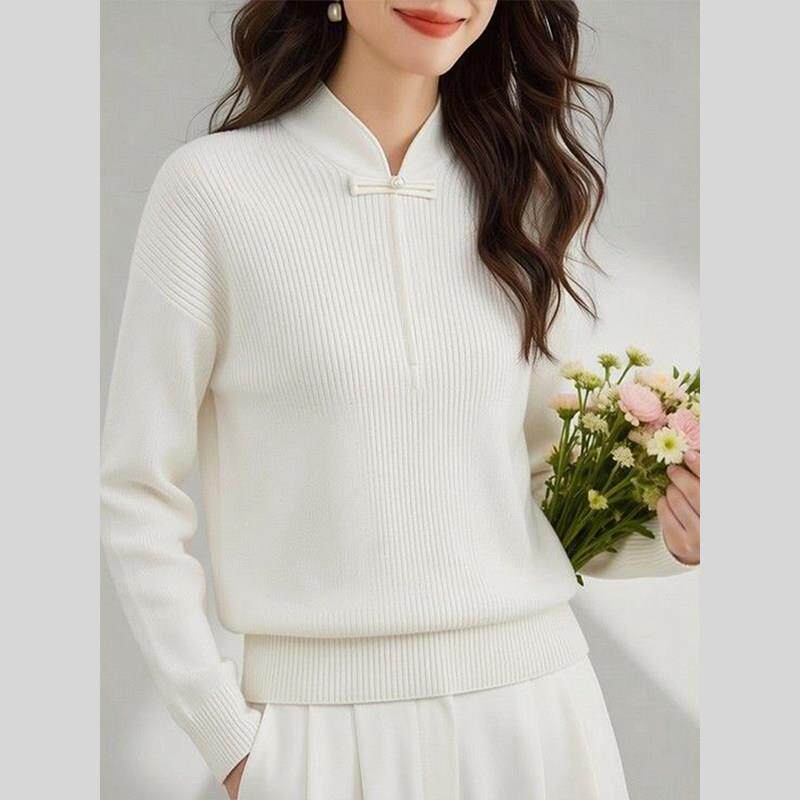 新中式国风白色针织衫上衣春装女款2026年新款独特超好看内搭打底