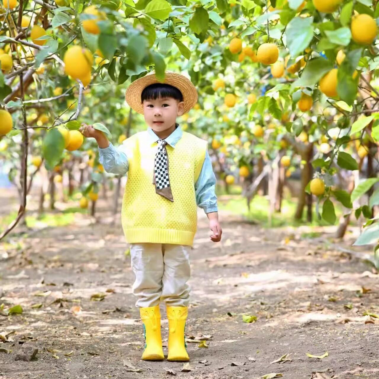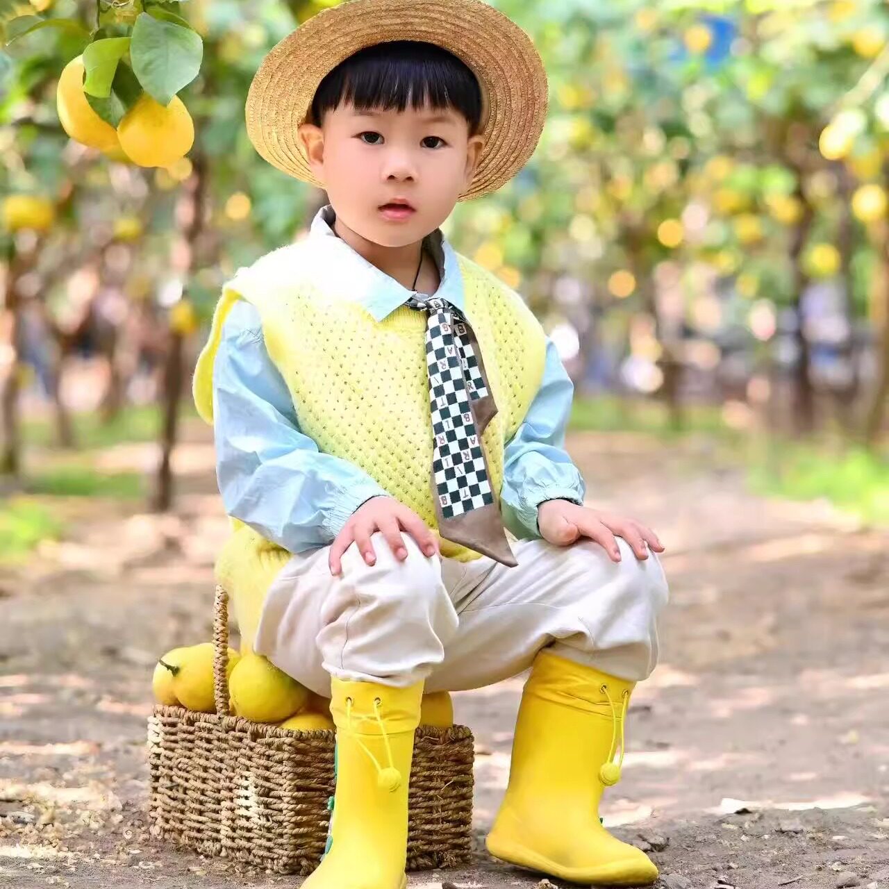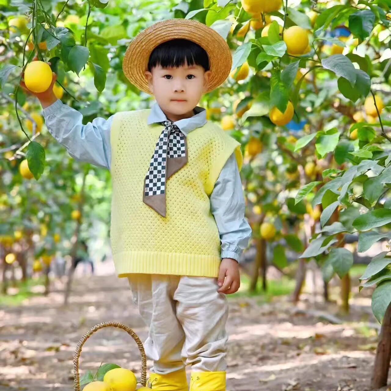 男女童小清新背心气质摄影拍照儿童韩版黄色文艺毛衣马甲套头上衣