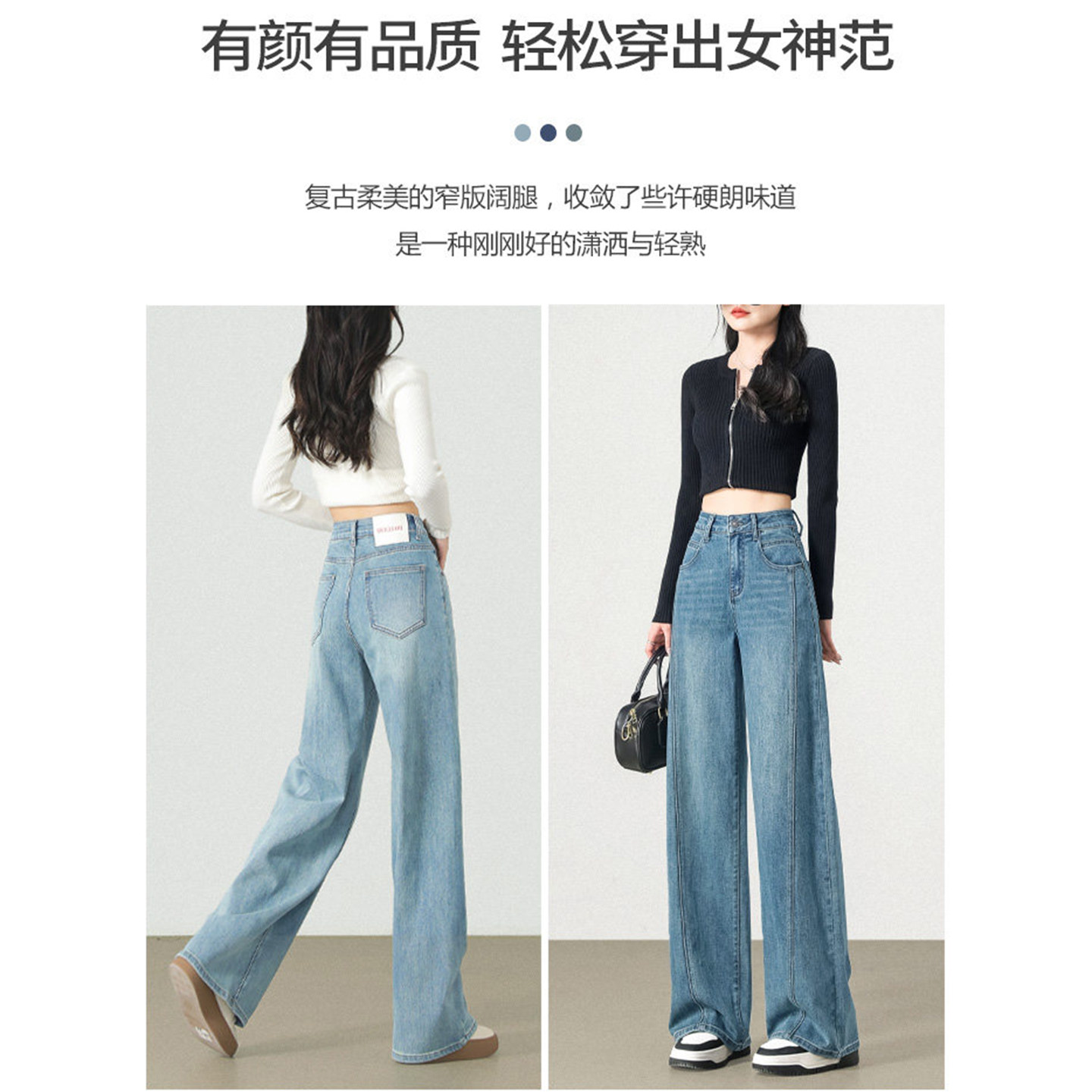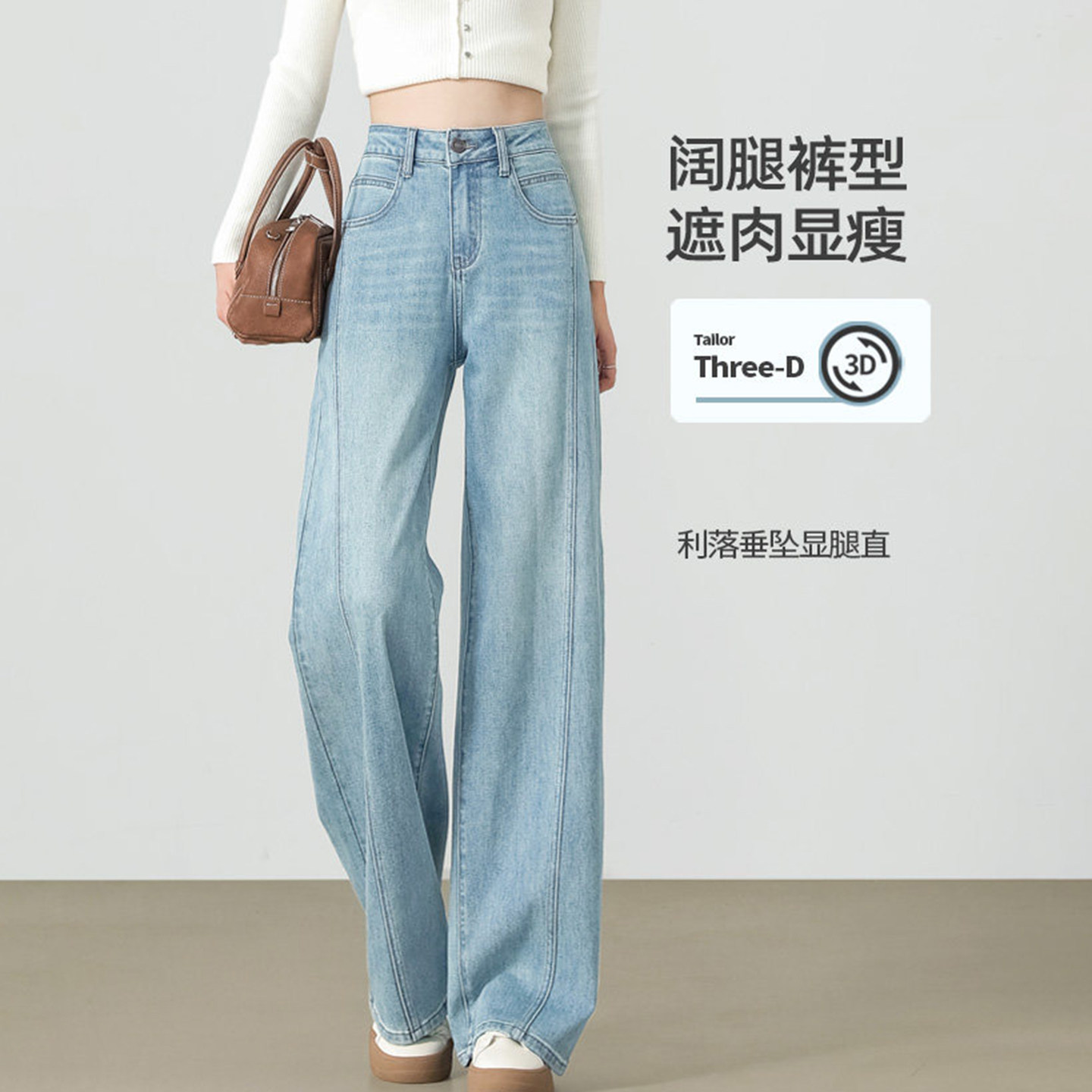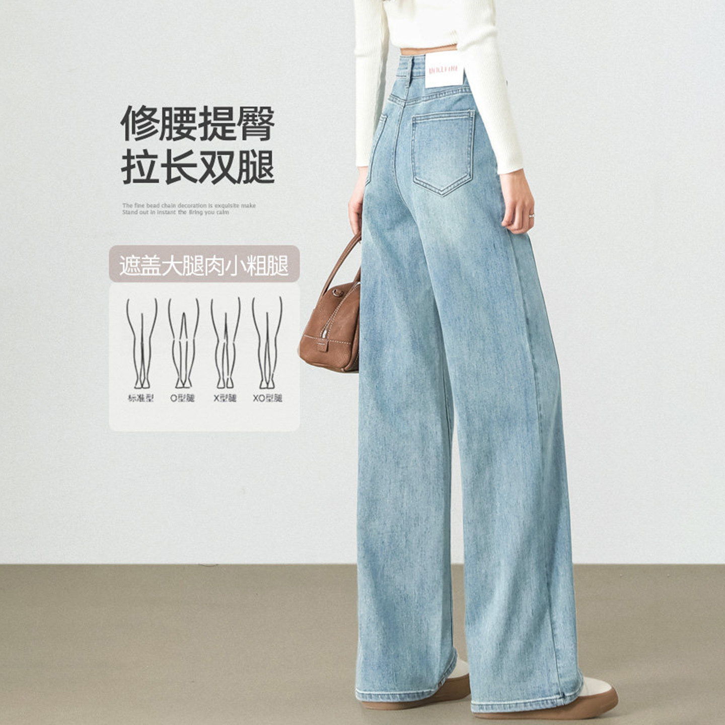 窄版阔腿牛仔裤女春夏季2026新款高腰小个子直筒宽松香蕉弯刀裤子