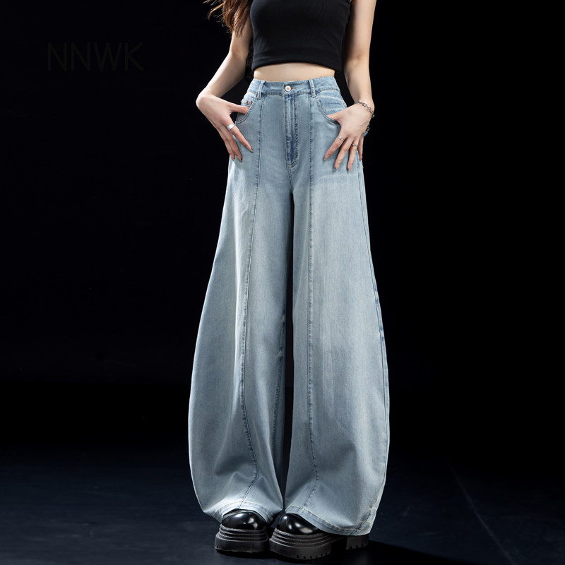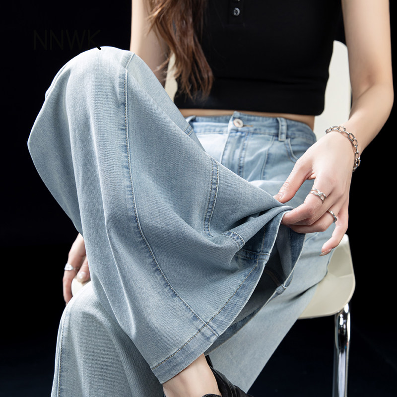 浅蓝色弯刀牛仔裤女2026新款春夏季薄款裤子宽松版型阔腿裤镰刀裤