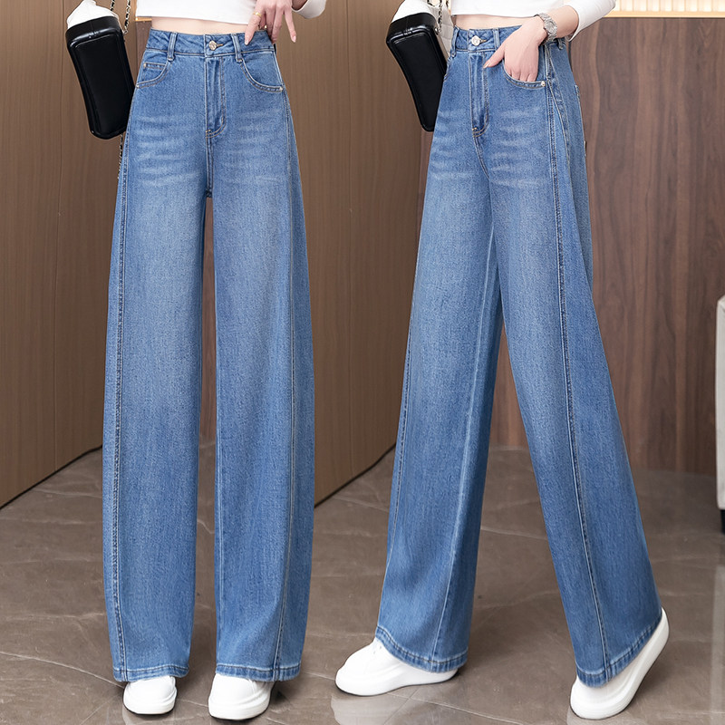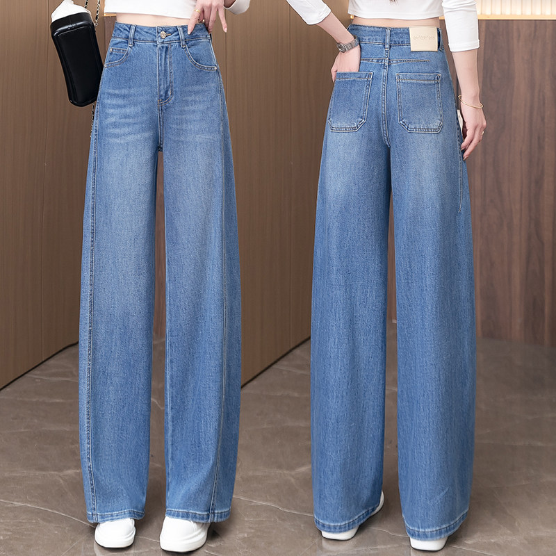 雅鹿女士弯刀牛仔裤春夏季薄款2026新款女裤气质显瘦浅蓝色阔腿裤