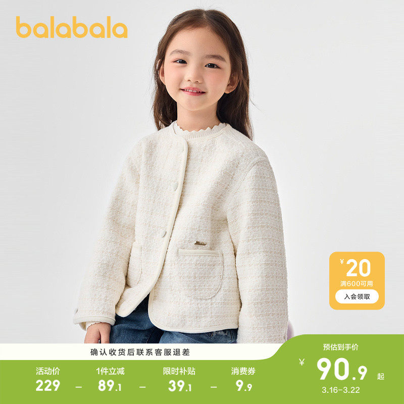 巴拉巴拉童装儿童棉服女童冬季小香风外套时髦洋气小童上衣甜美潮