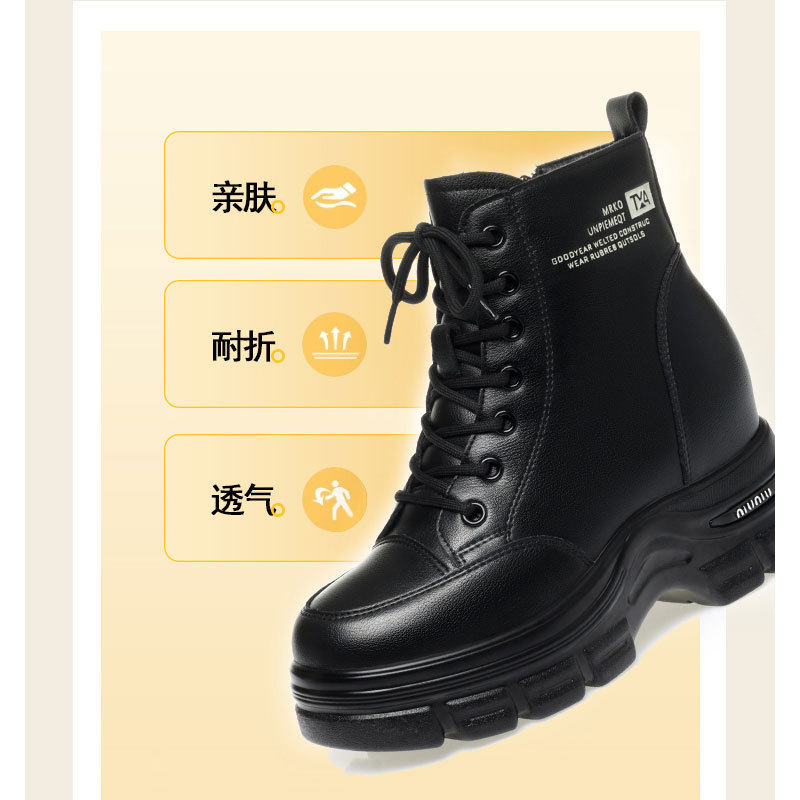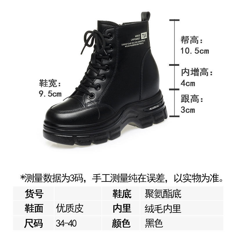 时尚运动休闲鞋小个子内增高款加绒防冻女士黑色短筒皮靴马丁靴女