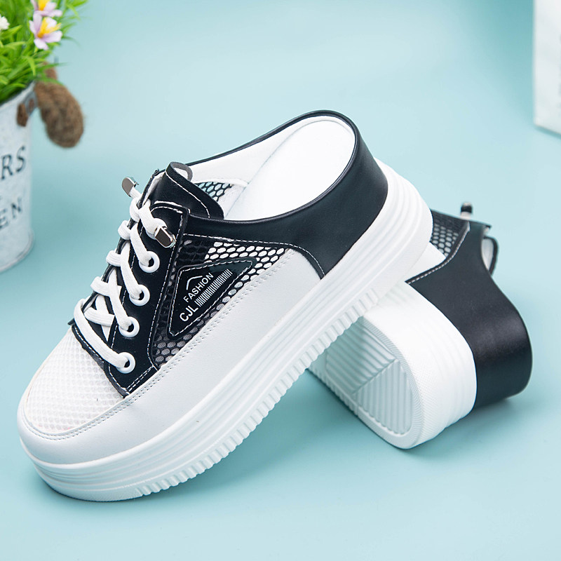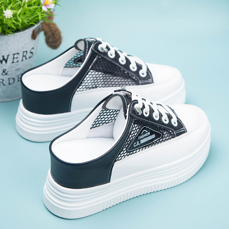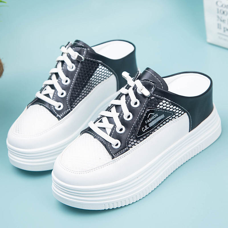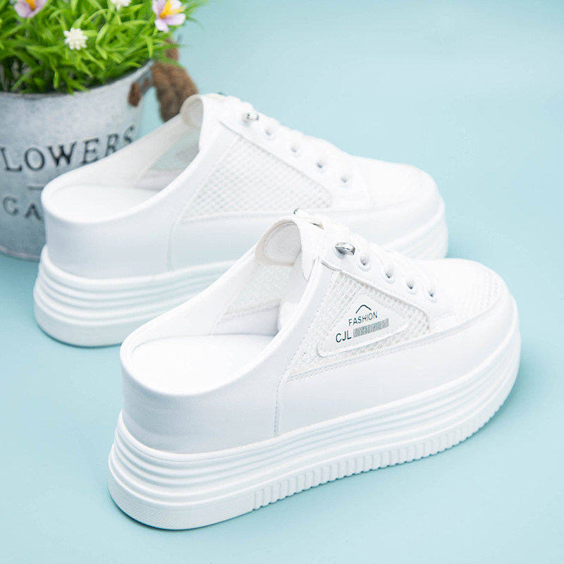 包头外穿半拖鞋女2026夏季网纱透气懒人一脚蹬内增高坡跟小白鞋女
