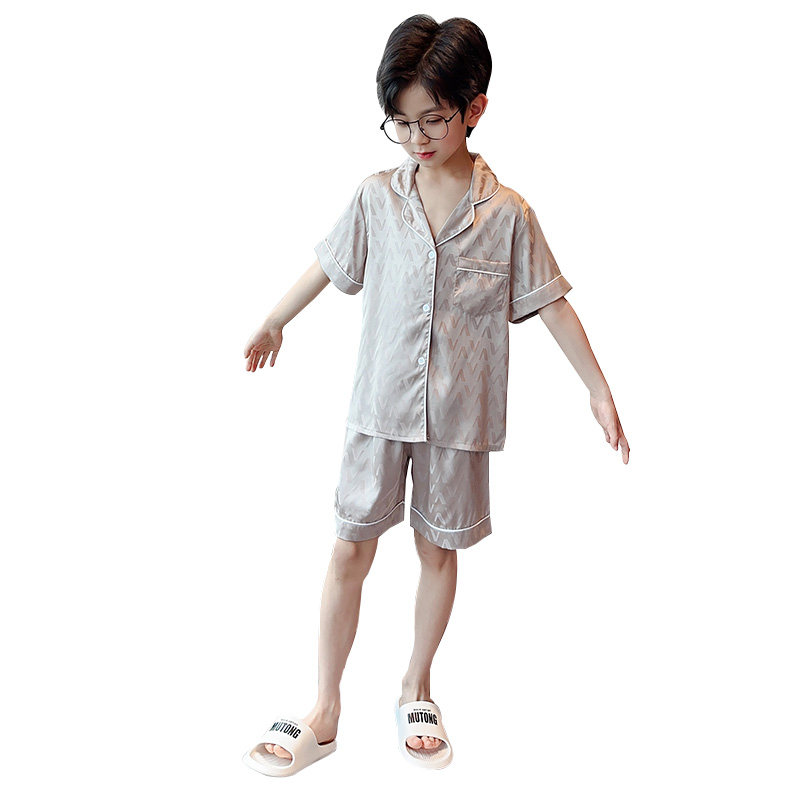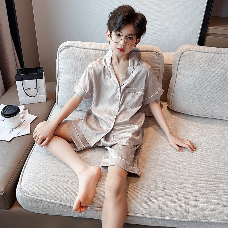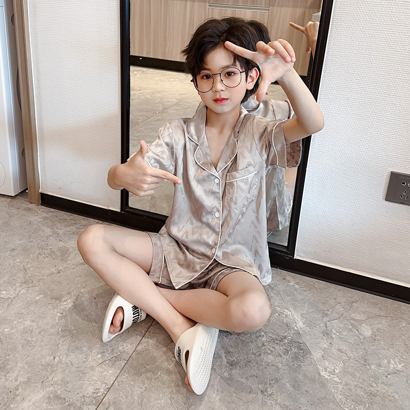 男童冰丝睡衣夏季短袖薄款2026新款儿童家居服时尚帅气大童空调服