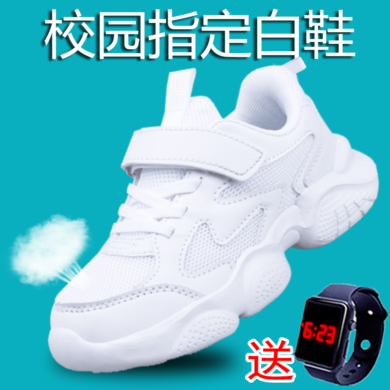 童鞋儿童小白鞋男童夏款跑步鞋休闲中大童透气网面男孩学生运动鞋