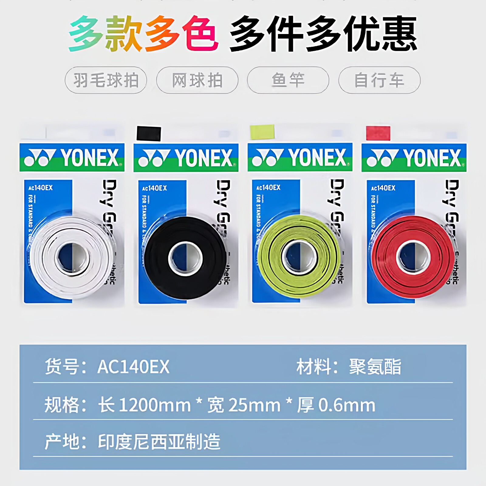 YONEX/尤尼克斯羽毛球拍手胶防滑吸汗带缠手柄绑带粘性薄款AC102