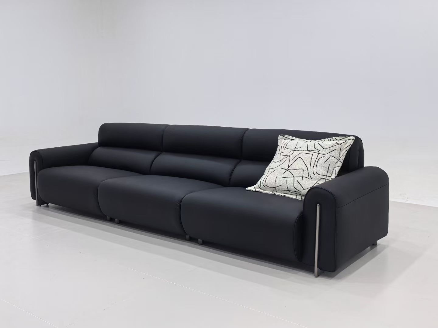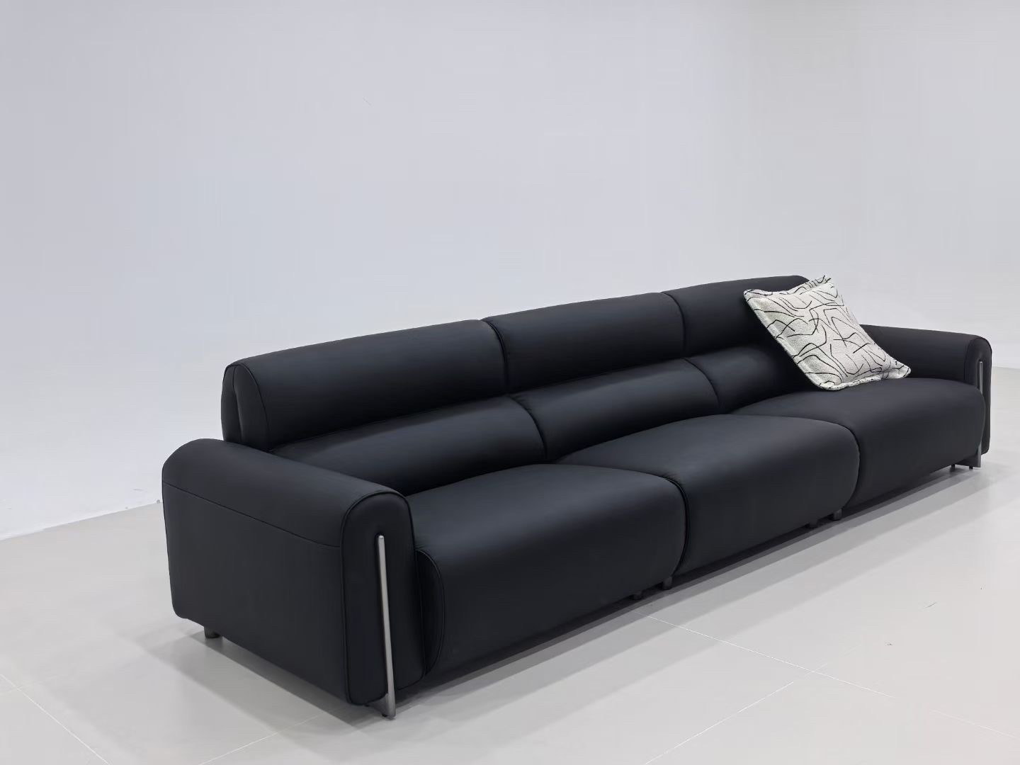 沙发客厅沙发轻奢高级感意式极简沙发直拍黑色皮沙发一字排大气