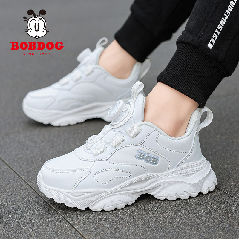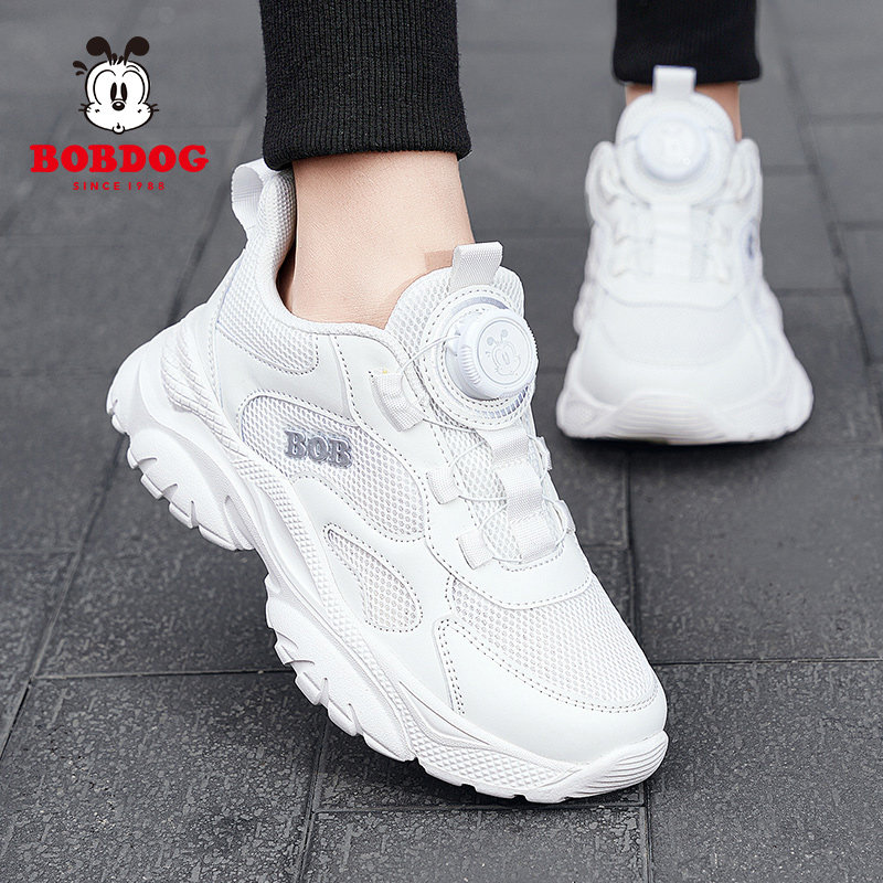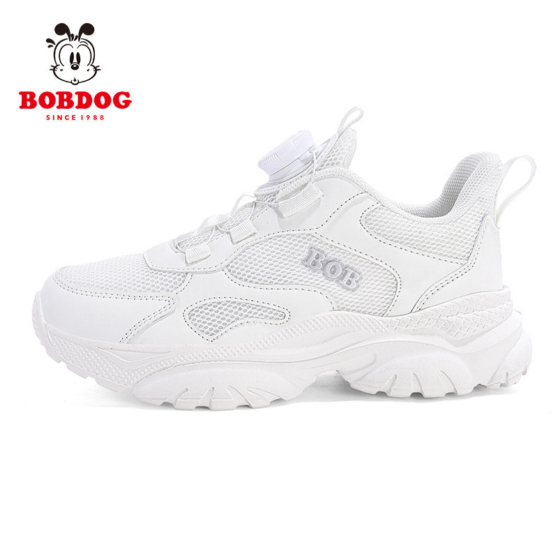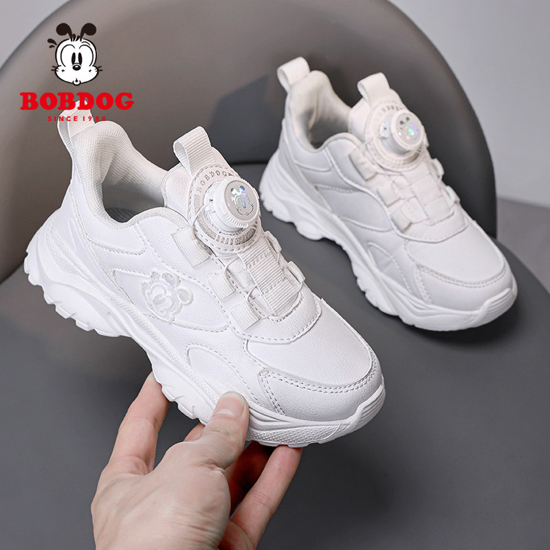 巴布豆儿童鞋小学生白色运动鞋男童小白鞋网面旋转纽扣女童跑步鞋