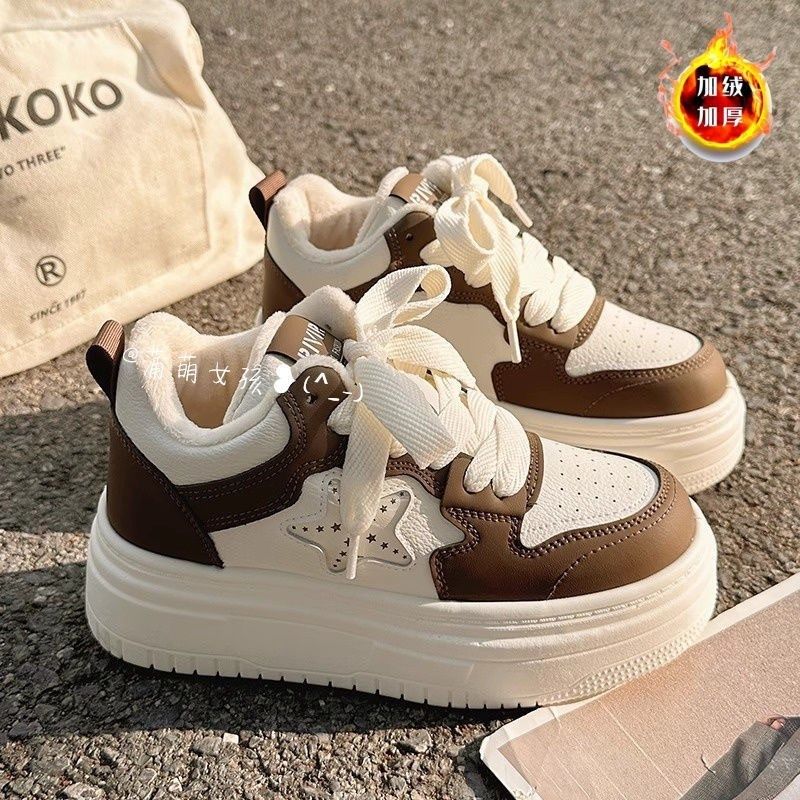女童板鞋加绒小白鞋2024冬季儿童保暖运动鞋增高二棉鞋大童女鞋子