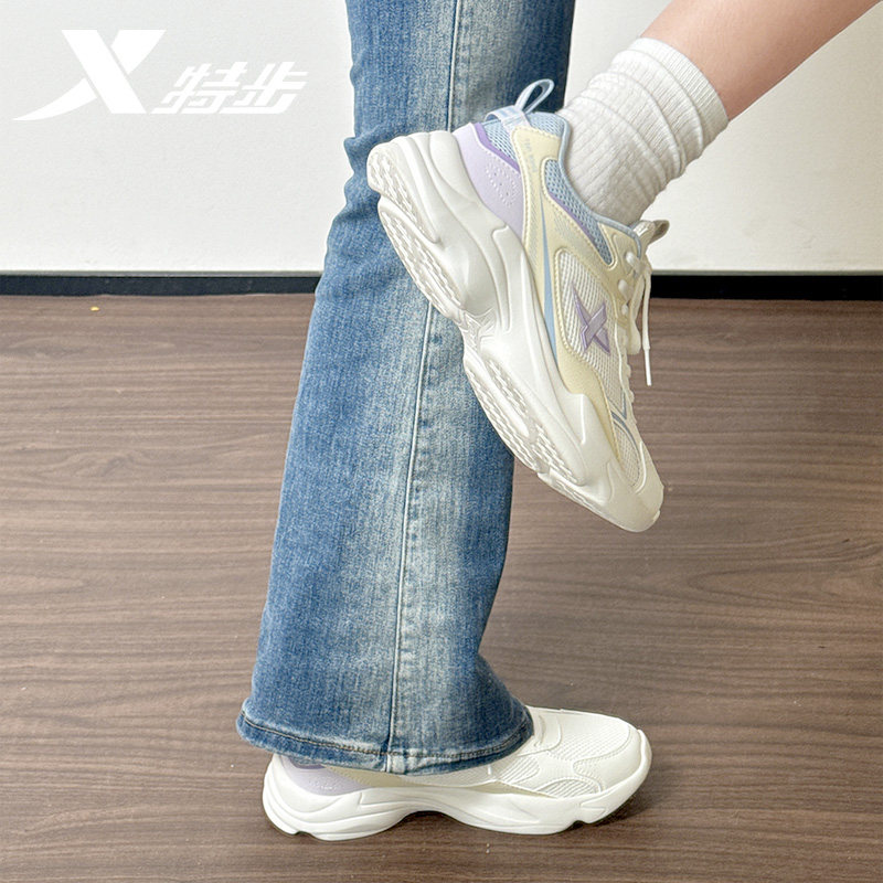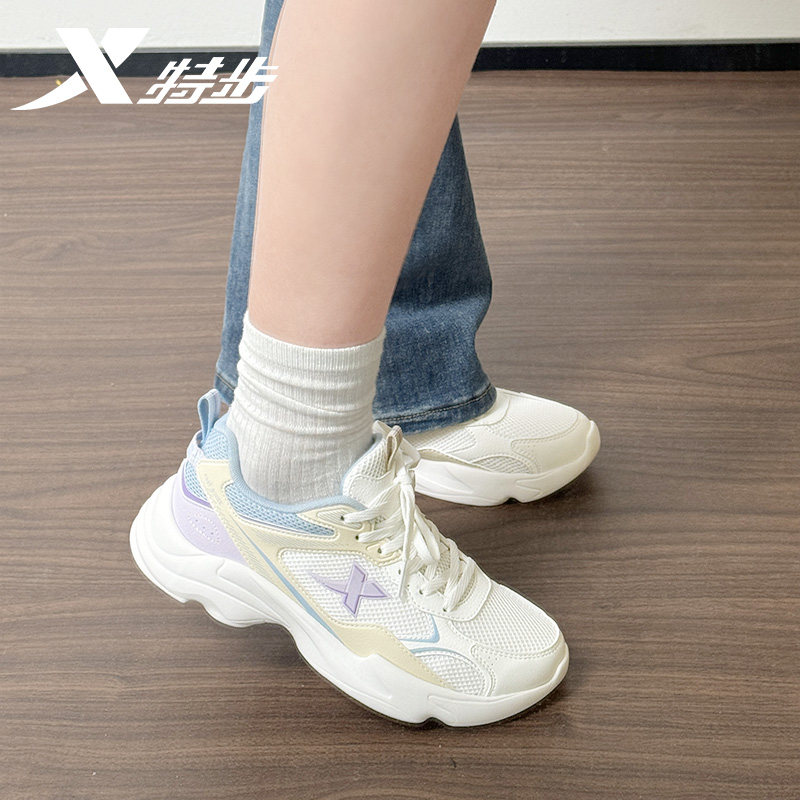 特步女鞋跑鞋女款春季新款官方鞋子网面透气老爹鞋轻便女士运动鞋