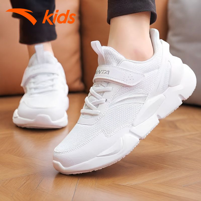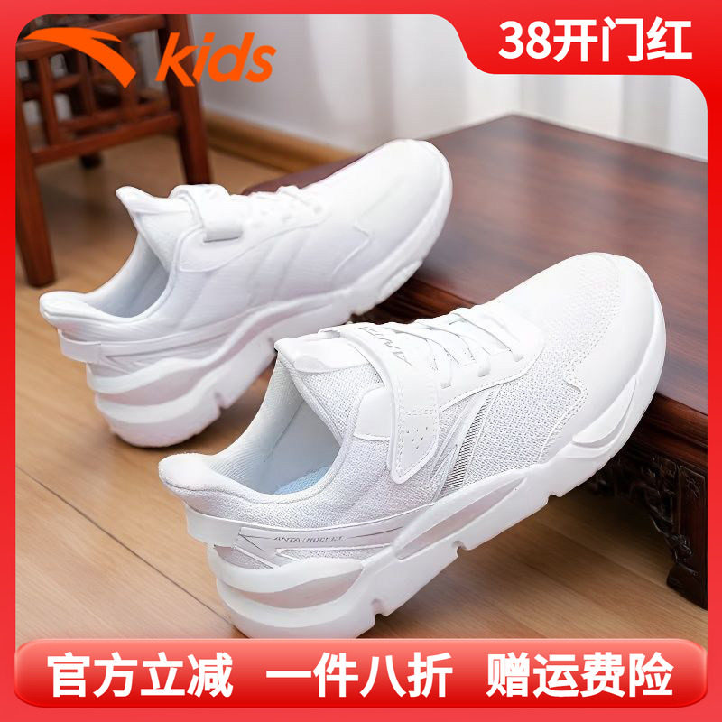 安踏童鞋男童小白鞋2026春季网面透气儿童白色运动鞋女童跑步鞋
