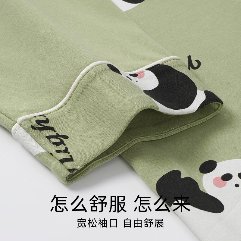 芬腾可安睡衣女款春秋季纯棉长袖卡通家居服女士可爱熊猫全棉套装