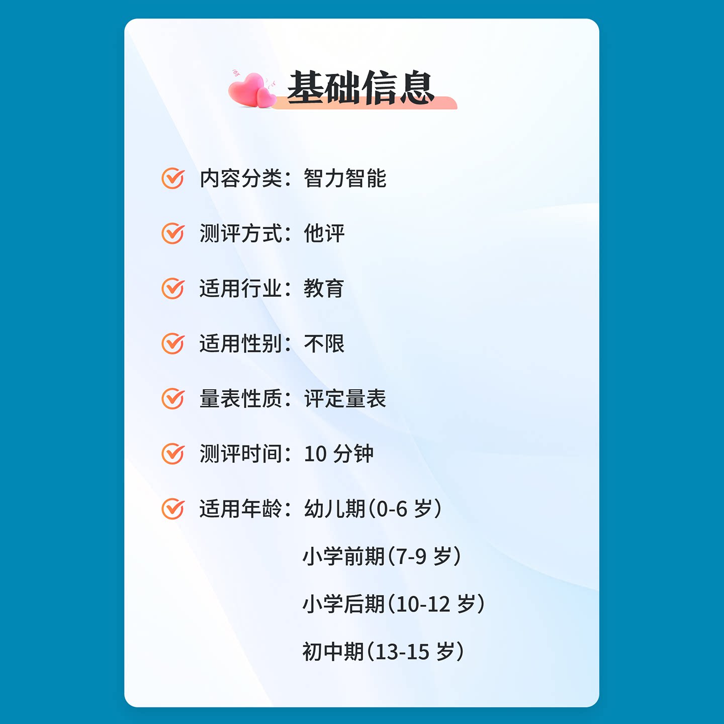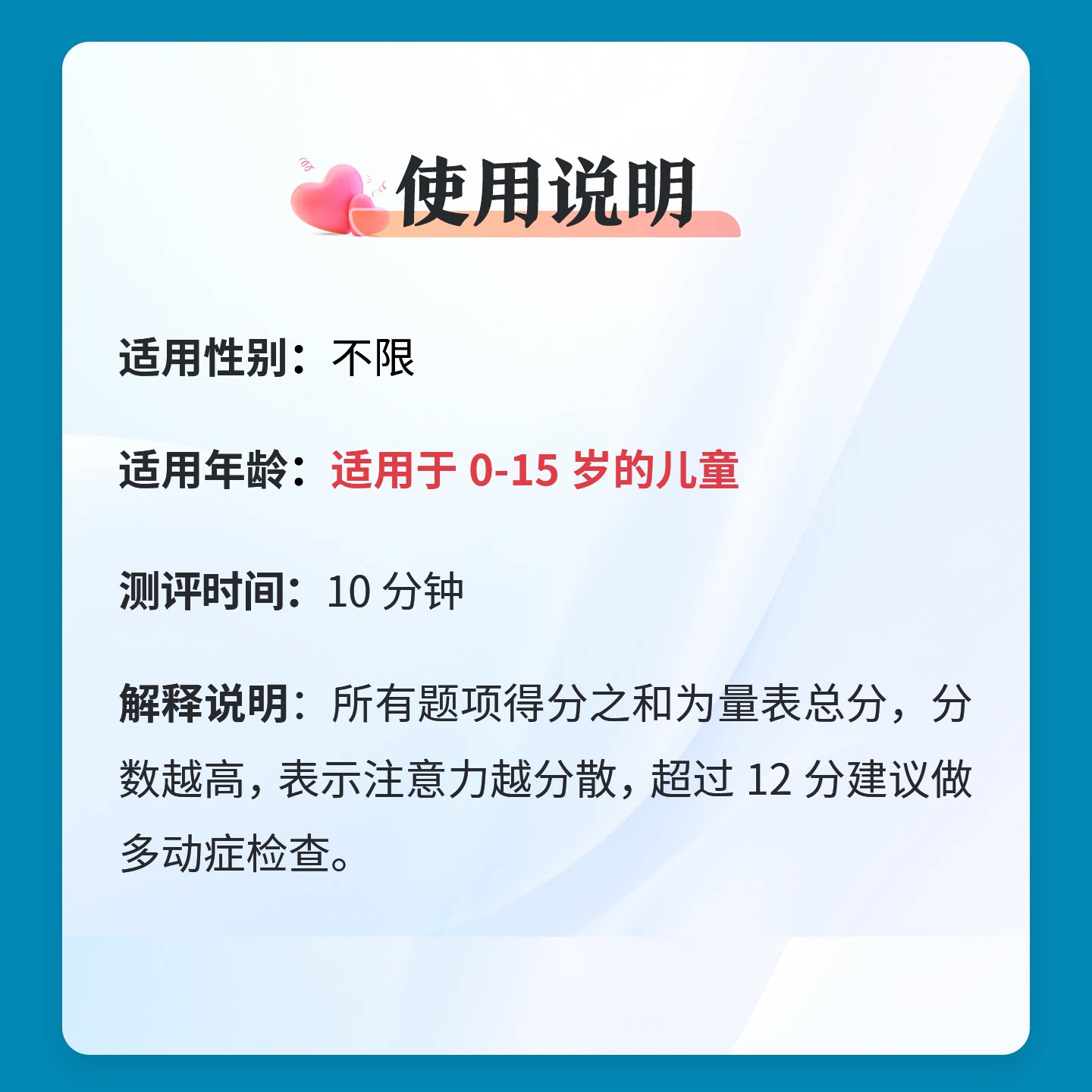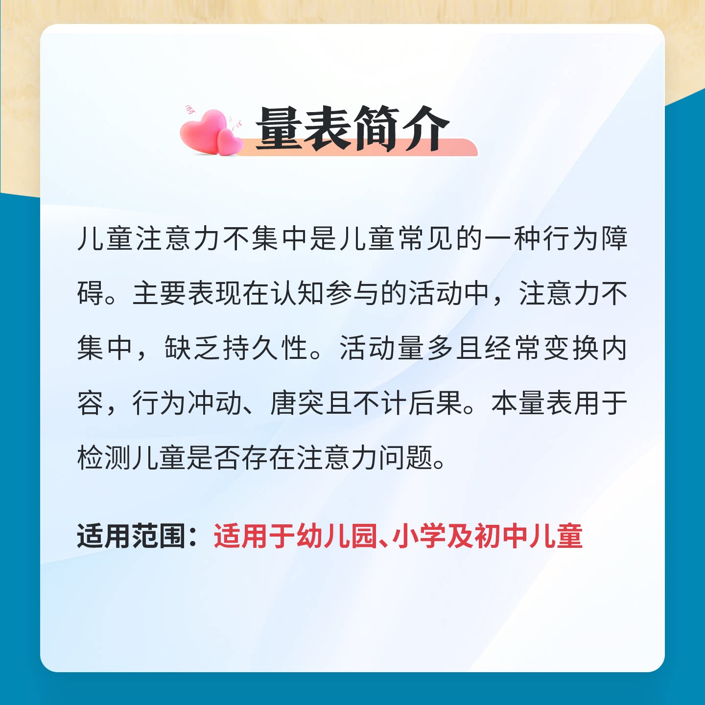 儿童注意力测试家长观察量表0-15岁孩子专注力测评学生心理测评表