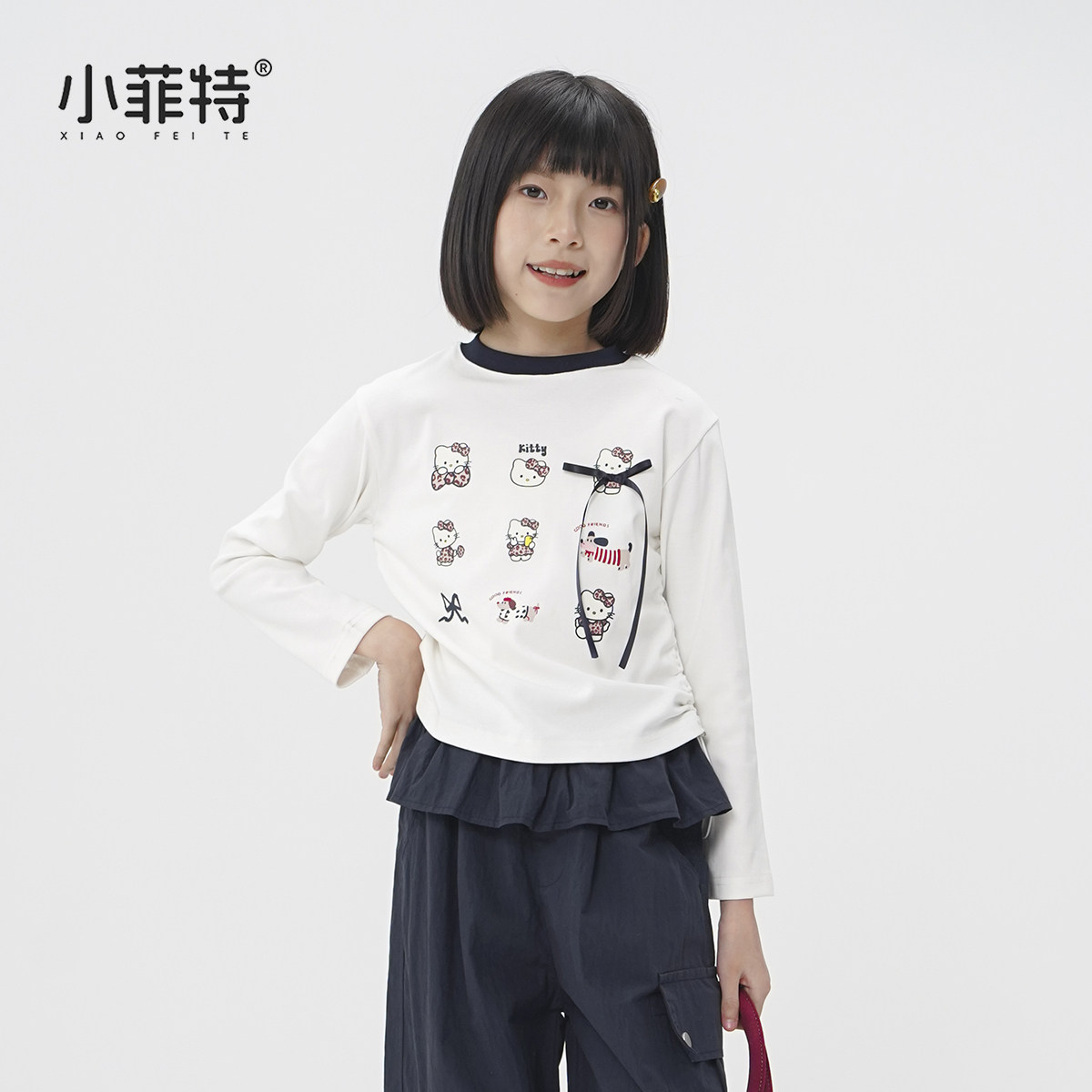 女童长袖T恤春季2026新款儿童短款辣妹打底衫大童早春超好看上衣