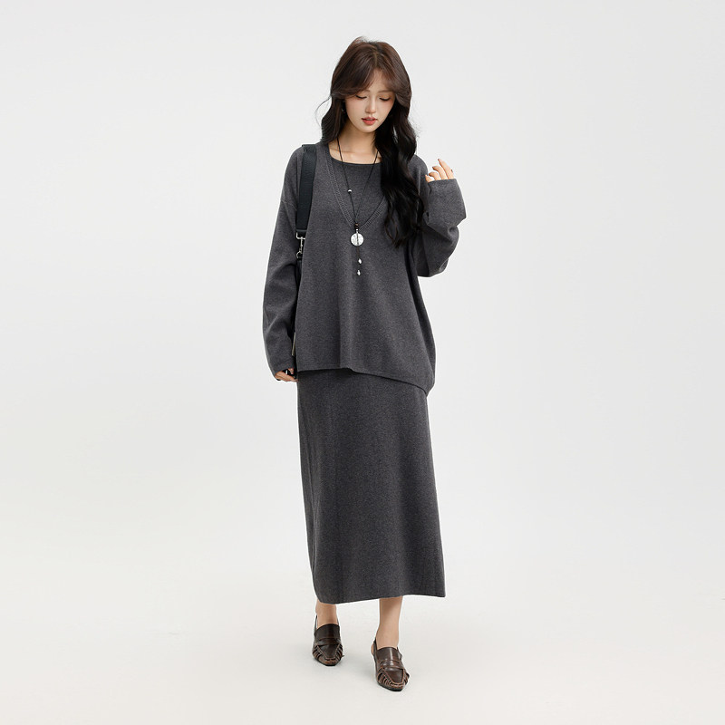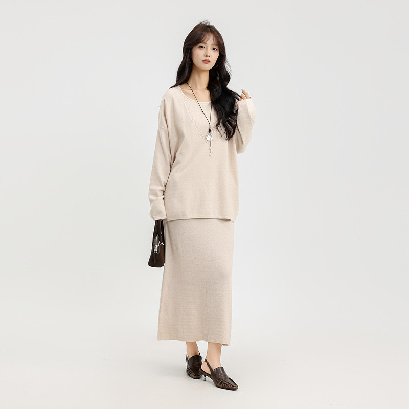 记忆的起点连衣裙套装2025冬季新V领毛衣吊带裙两件套69AD85005D