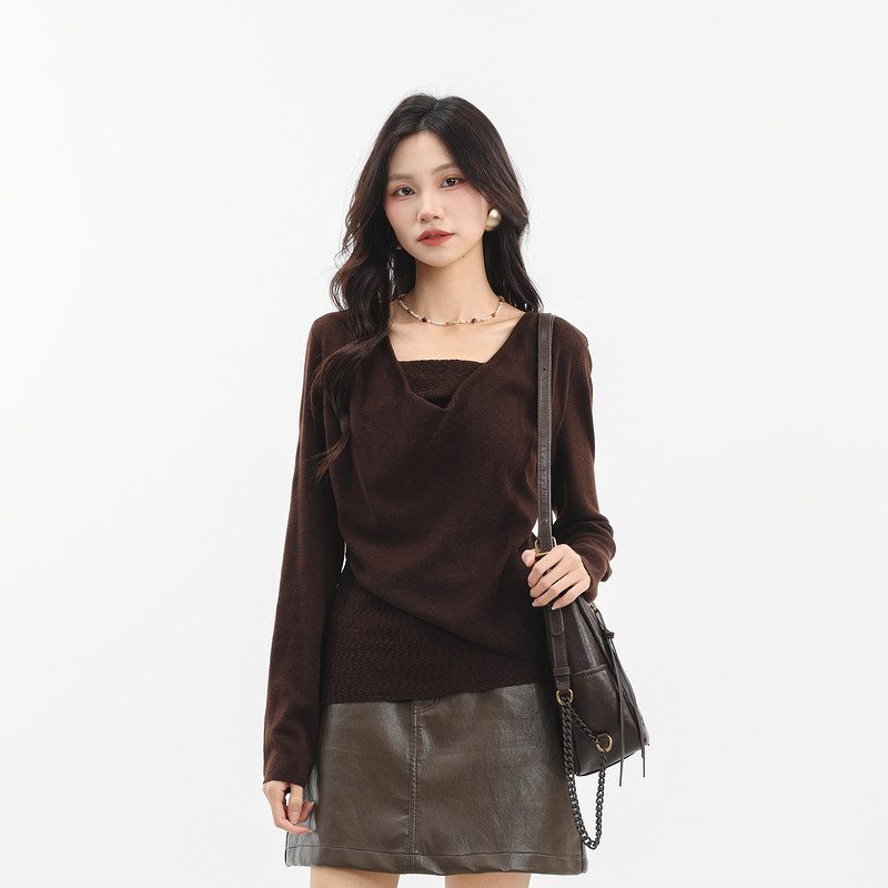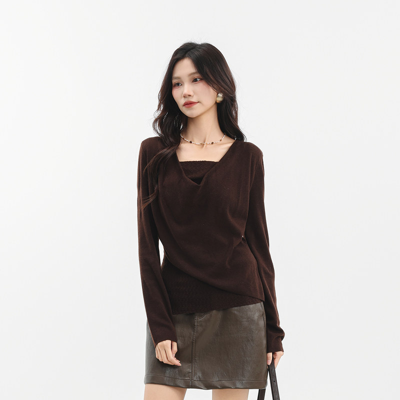 记忆的起点套头毛衣2025冬季新款设计感荡领针织上衣女69AD52027