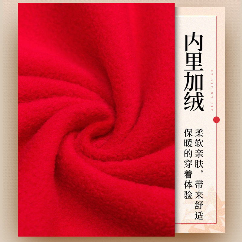 阿迪达斯红色新年款加绒外套男装2026新款运动服男士休闲立领夹克