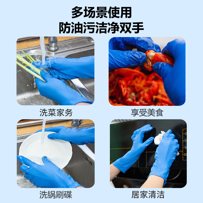 加长加厚一次性手套丁腈橡胶乳胶食品级餐饮厨房家务洗碗防水耐用