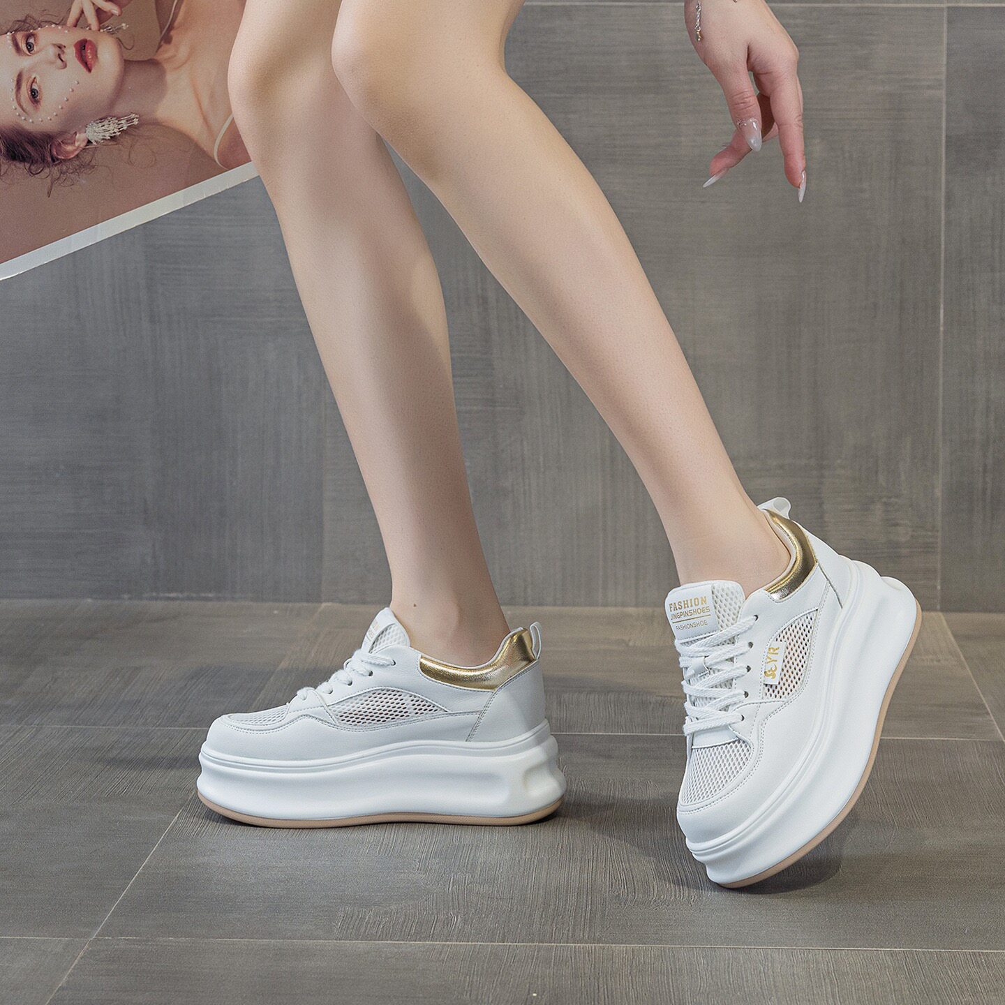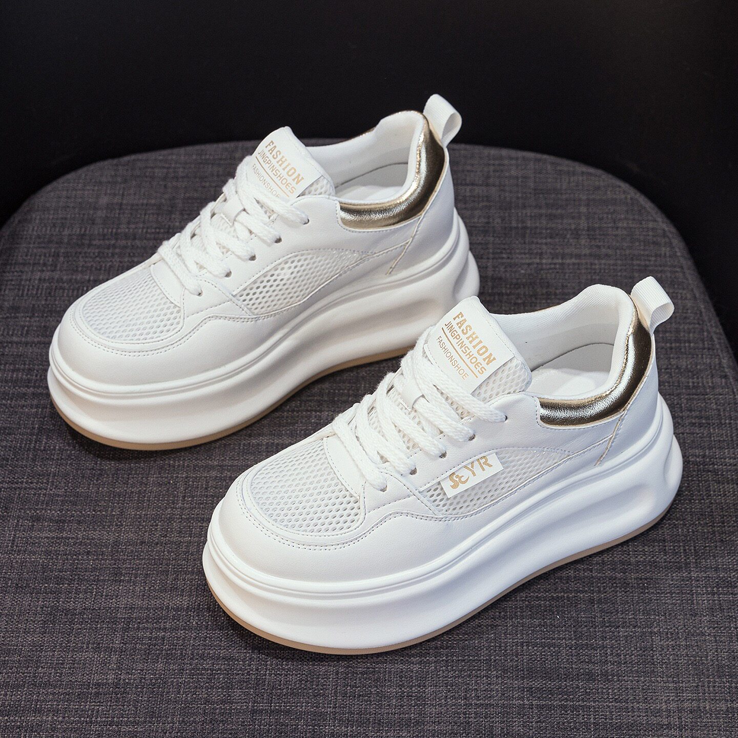 夏季内增高小白鞋女款2026新款爆款透气网面轻便厚底小个子休闲鞋