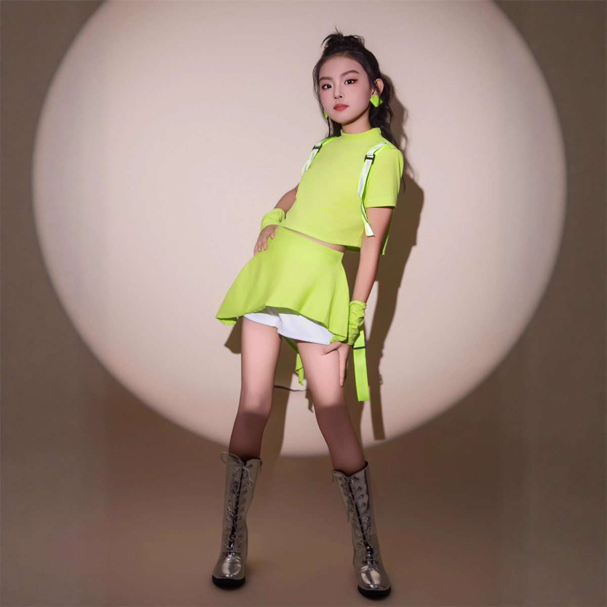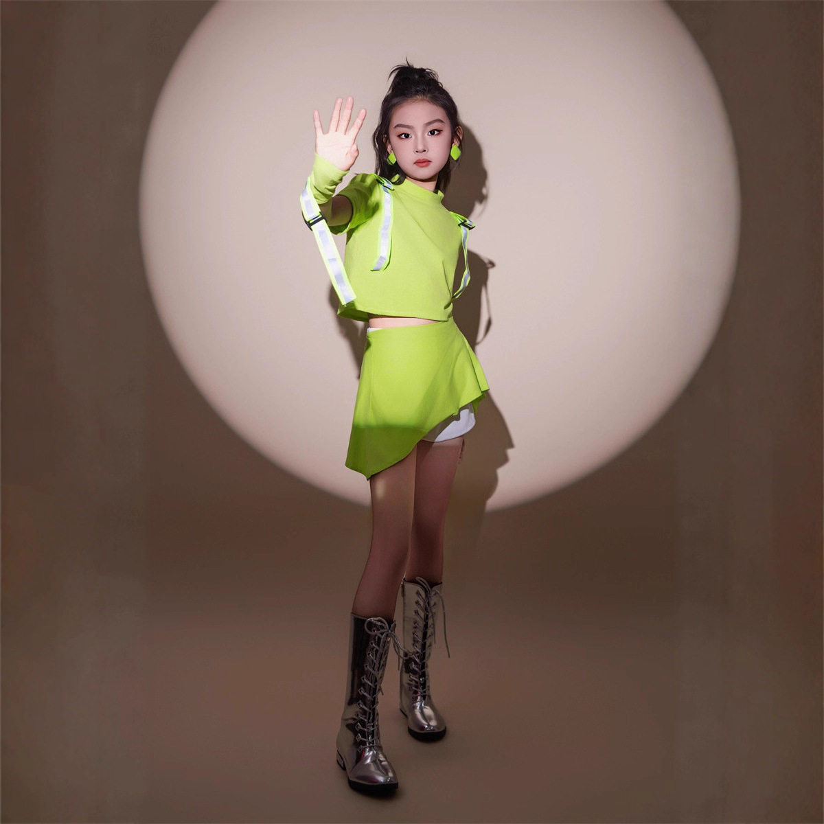 《荧光绿》女童T恤裤裙套装儿童走秀拖尾9潮酷可日常中大童运动风