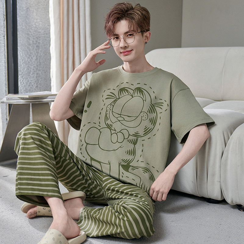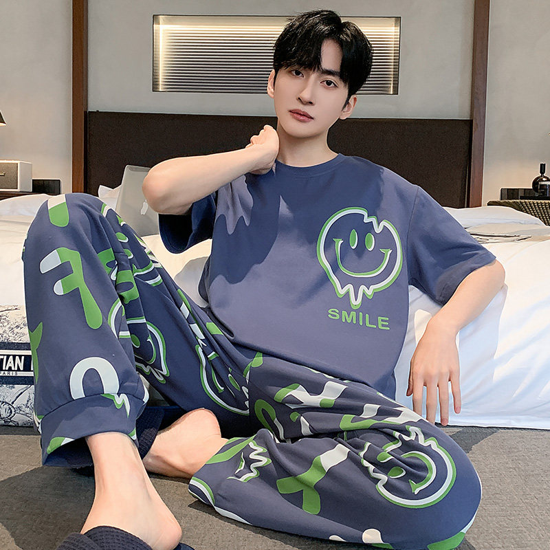 311线报网描述:青少年男士睡衣短袖长裤夏季薄款纯棉家居服