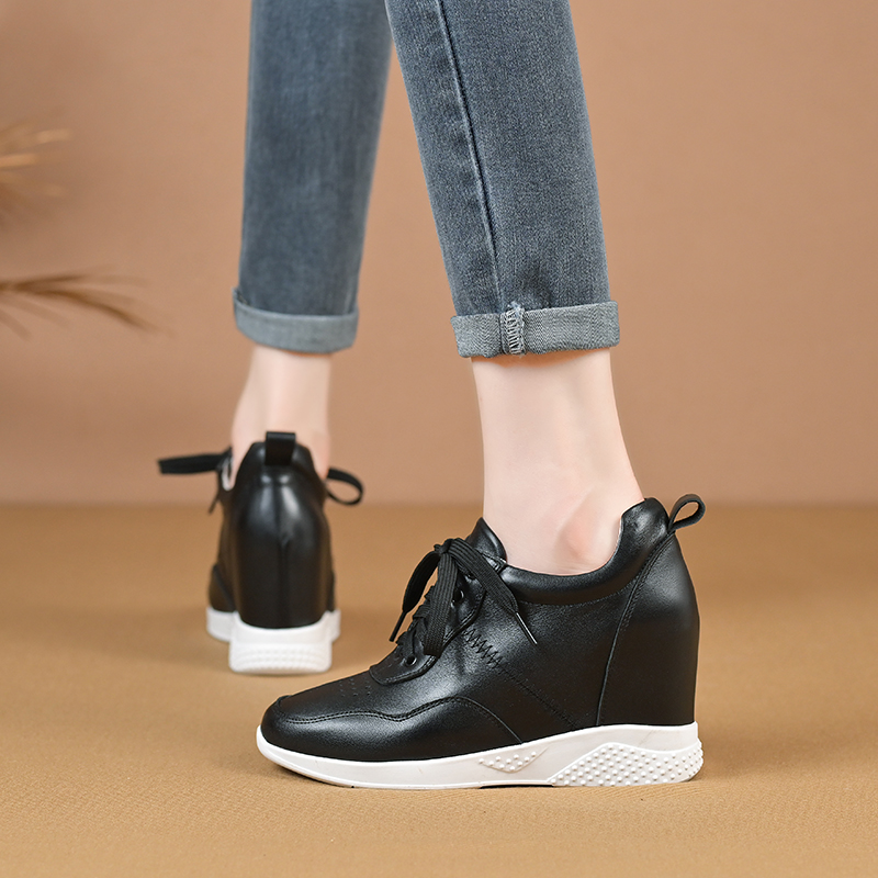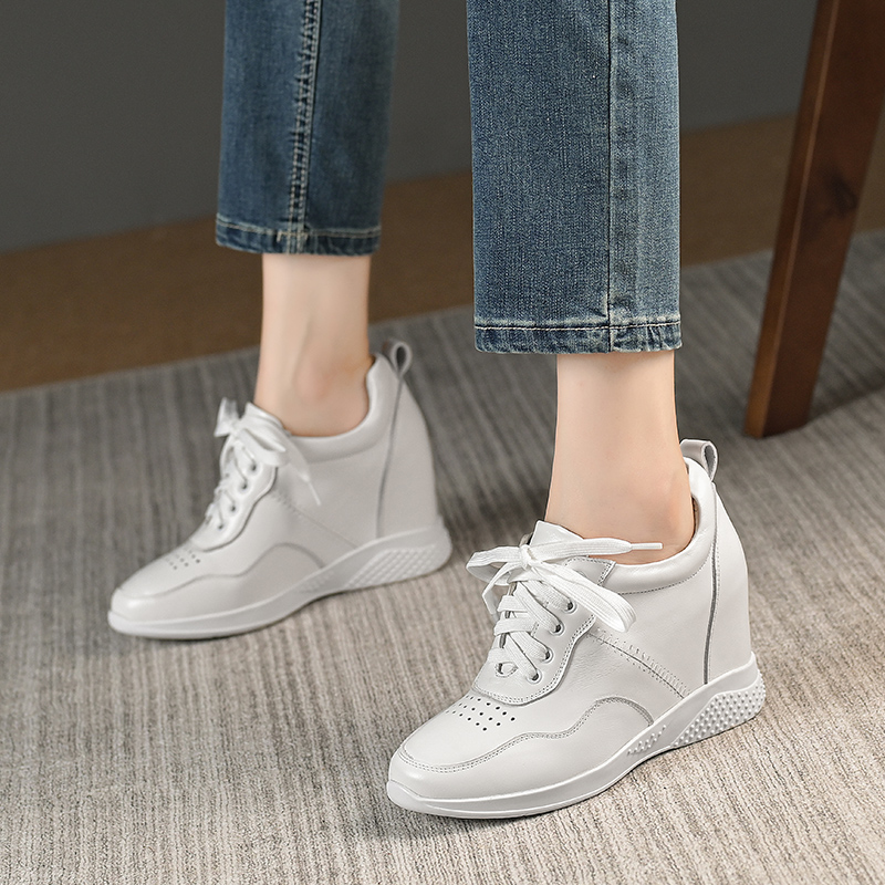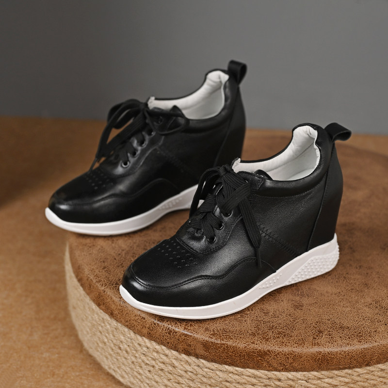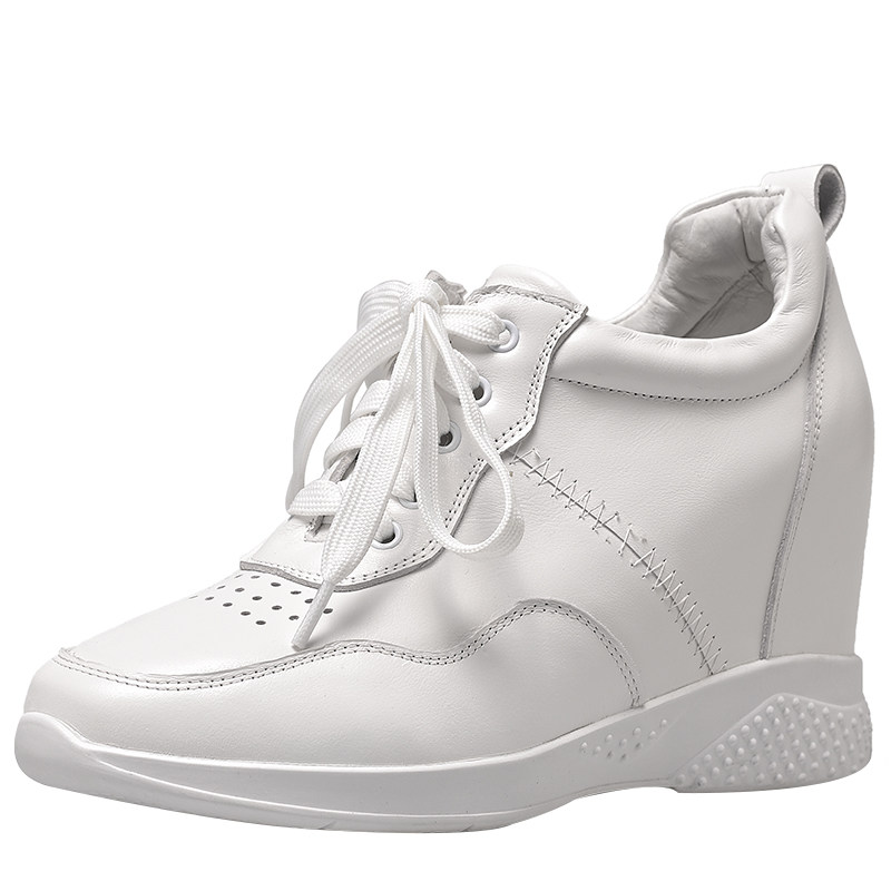 北西迪9CM内增高真皮女鞋百搭简约系带厚底休闲小白鞋春秋单鞋潮