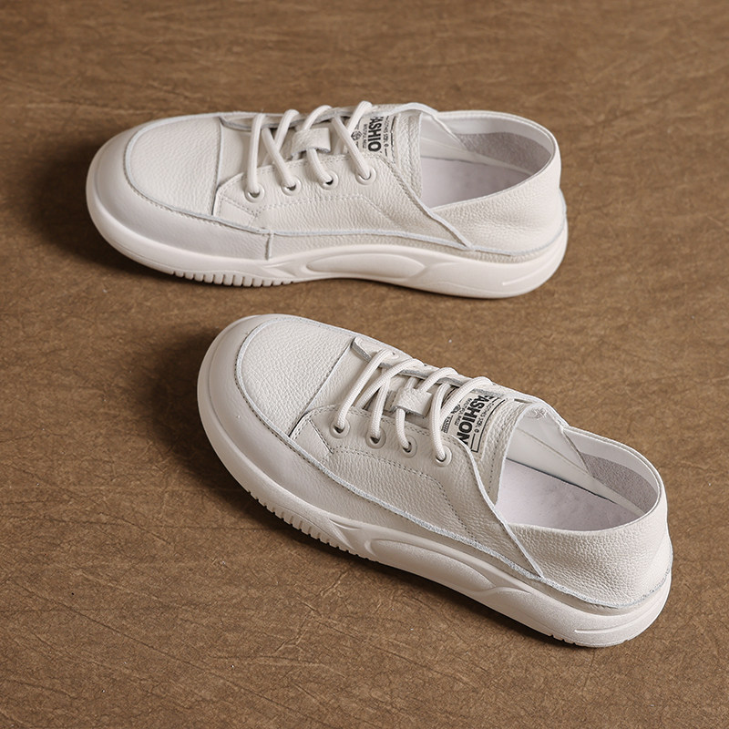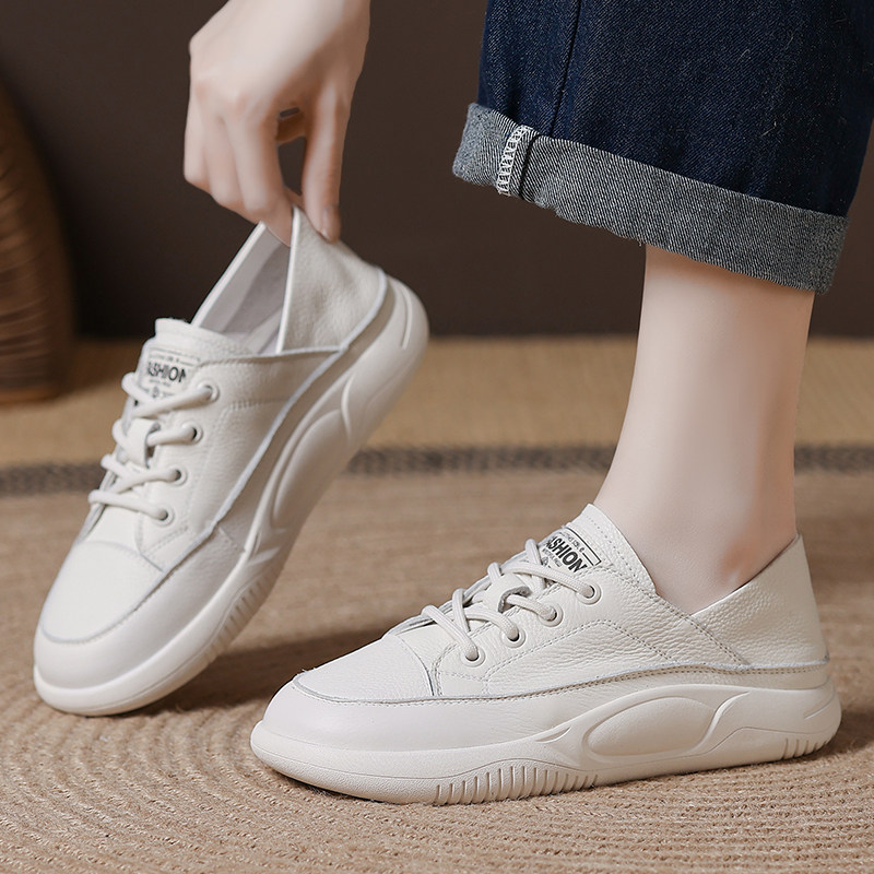 头层牛皮乐福鞋女春软底单鞋2026春秋真皮小白鞋两穿复古休闲板鞋