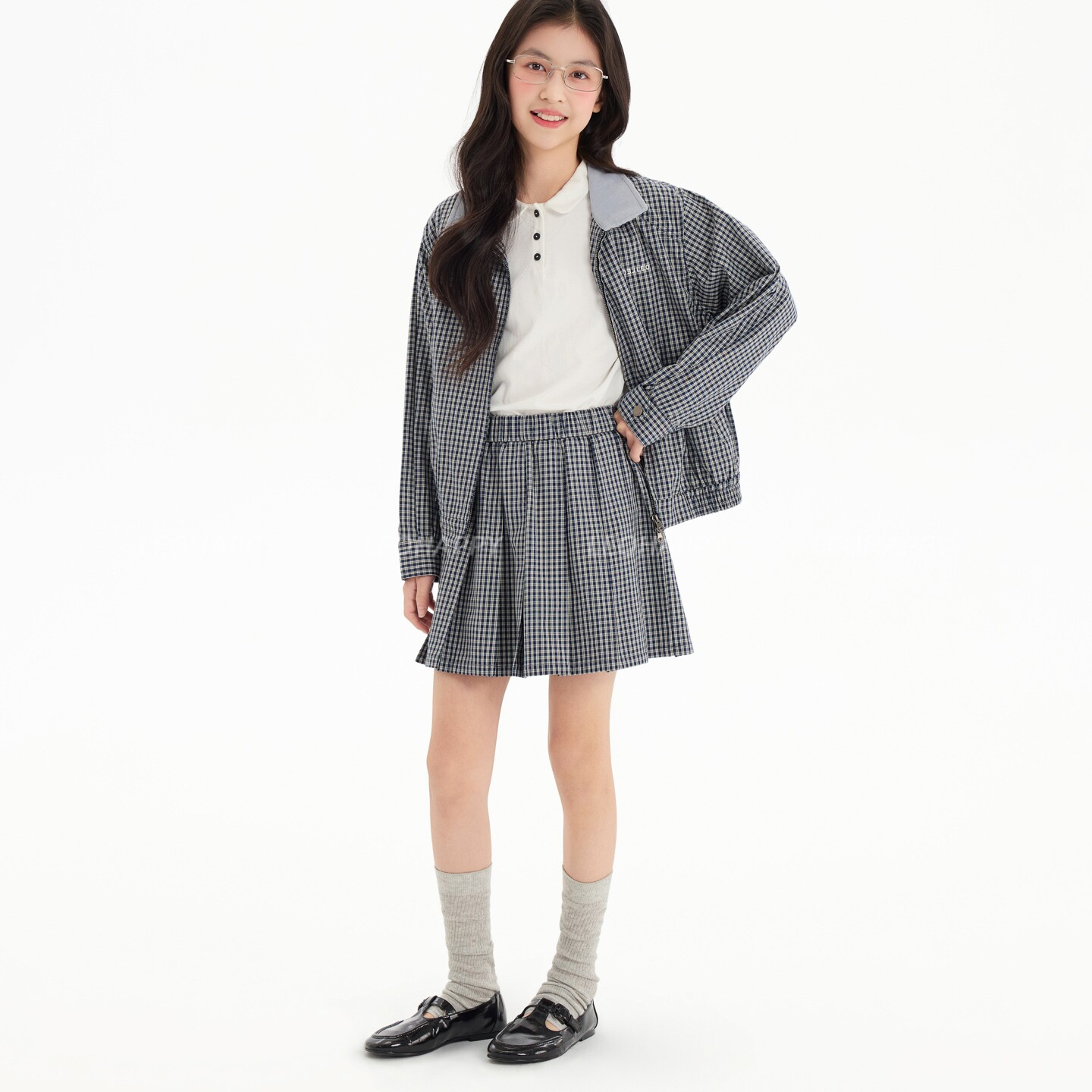 LEOHAPPY女童半身裙春夏款外穿儿童裙子百褶裙纯棉中大童格子短裙
