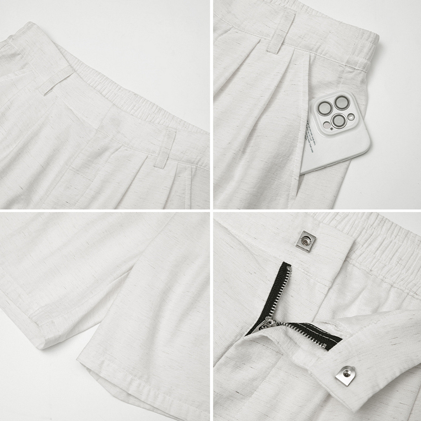 311线报网描述:五分裤型 亚麻肌理 舒适透气 半松紧腰