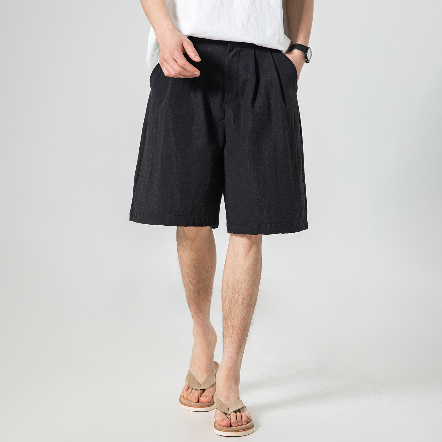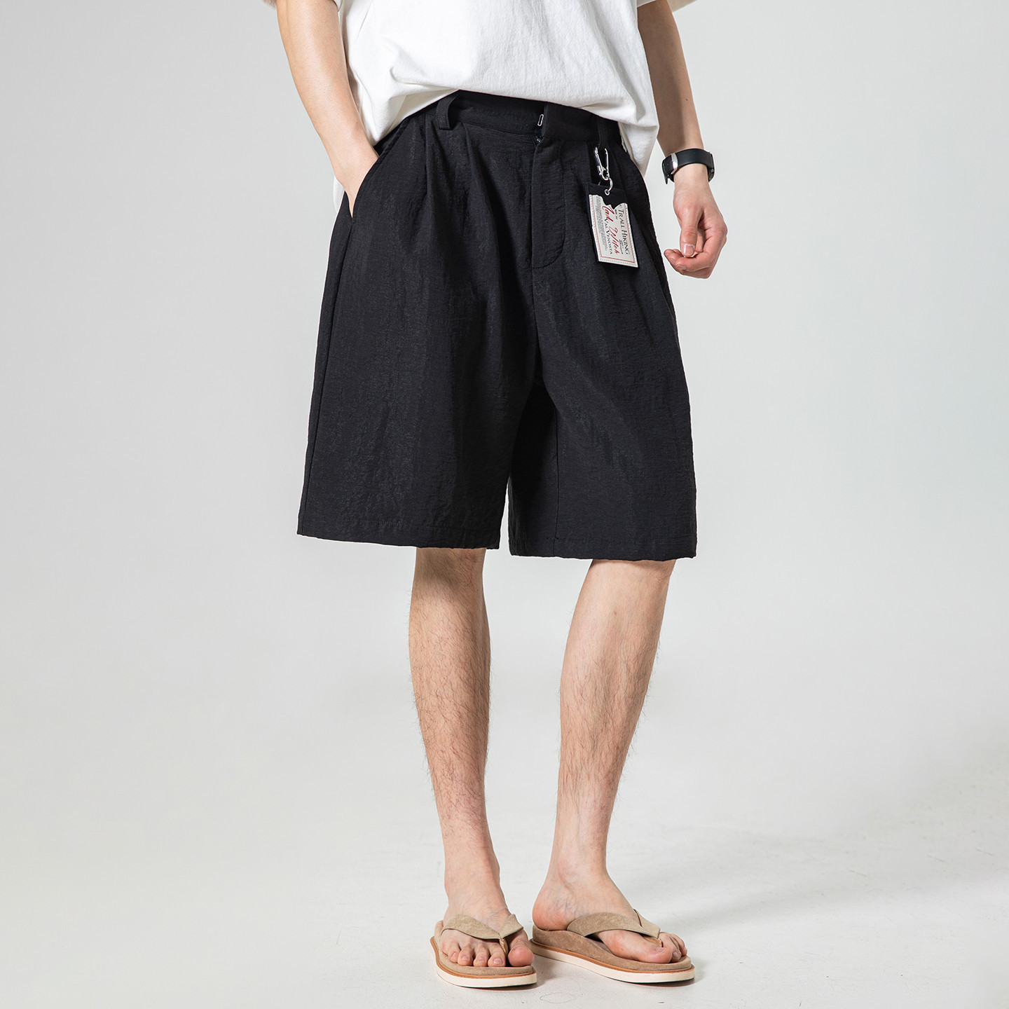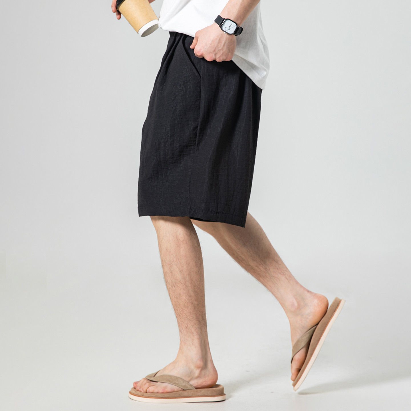 男士黑色老钱风亚麻五分裤男款夏季薄款透气短裤2026年新款沙滩裤