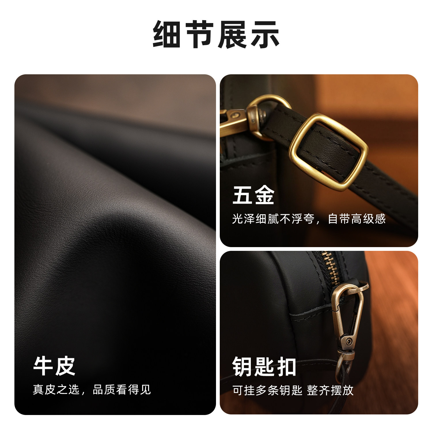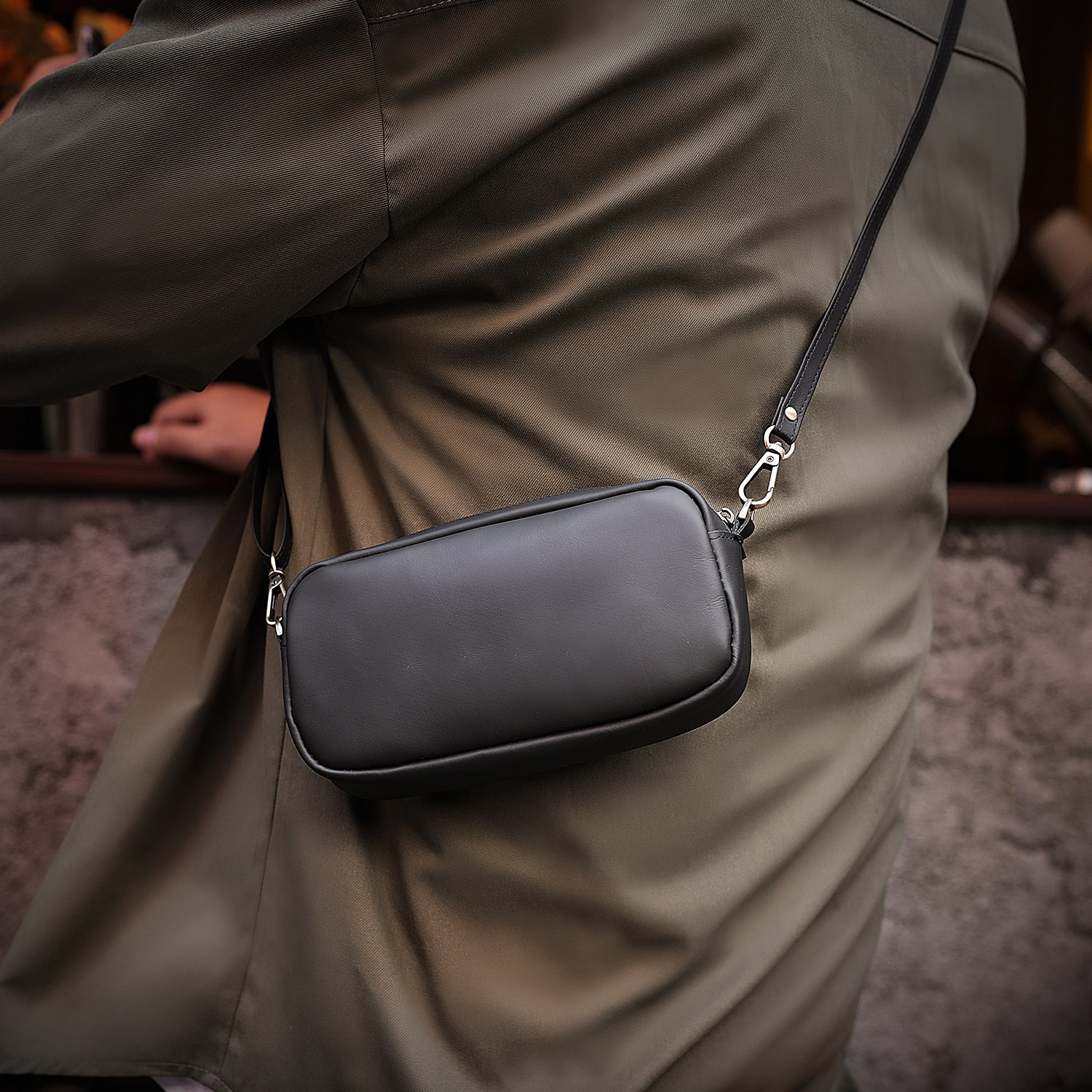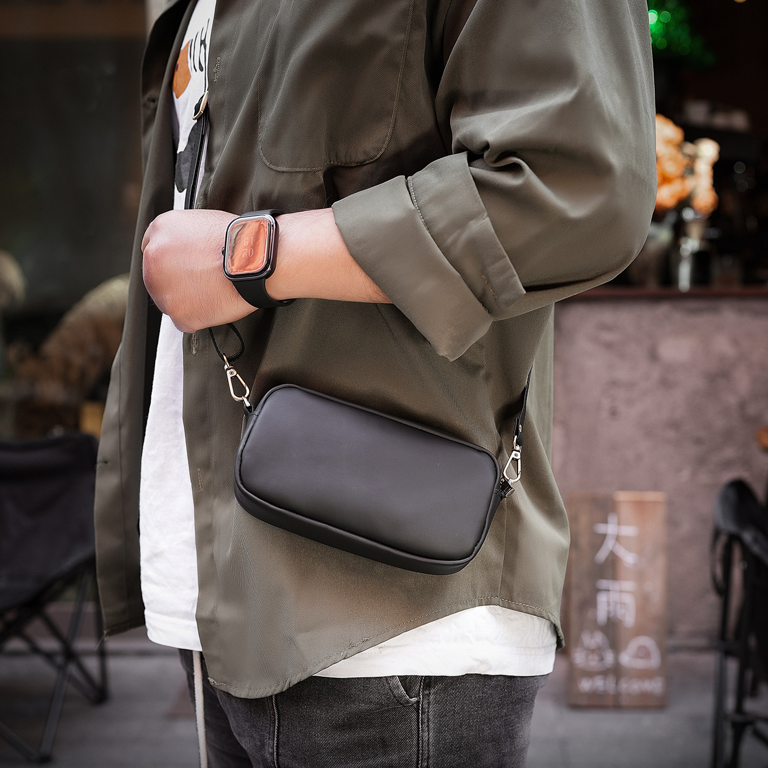 鹿师傅头层牛皮男士斜挎包真皮随身小包新款小挎包斜挎手机包男包