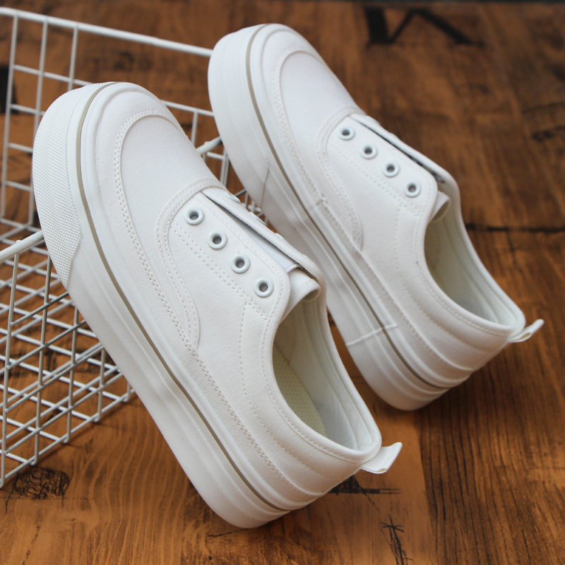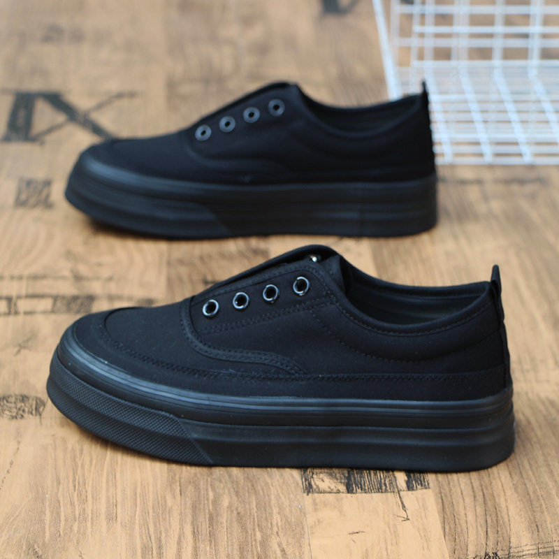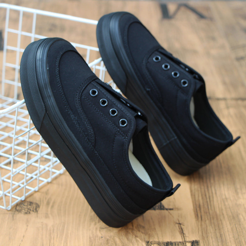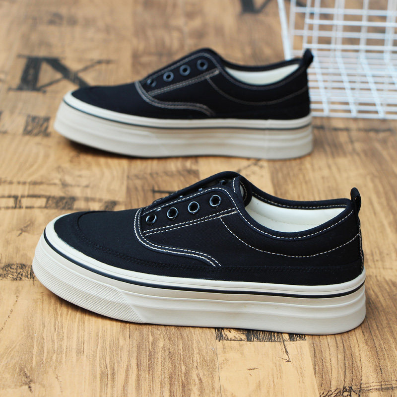 人本一脚蹬帆布鞋女鞋2026春季新款百搭黑色板鞋厚底球鞋女款鞋子