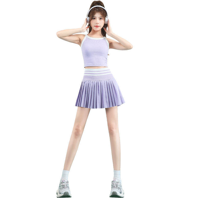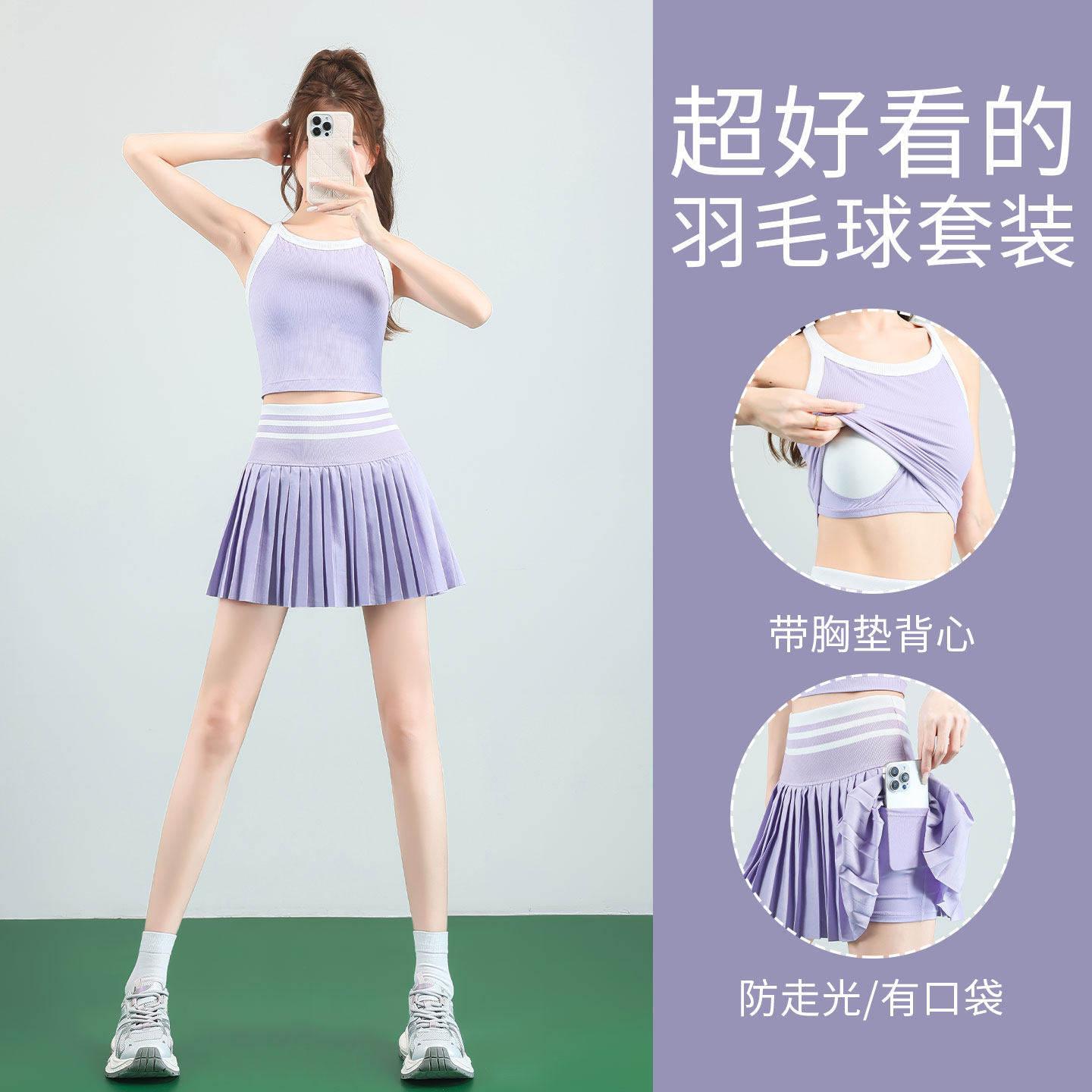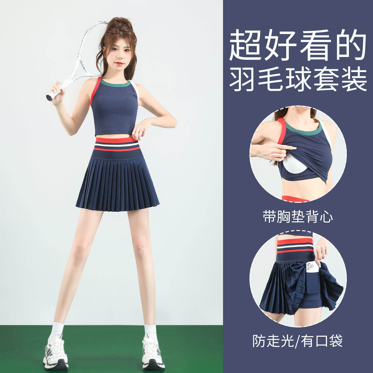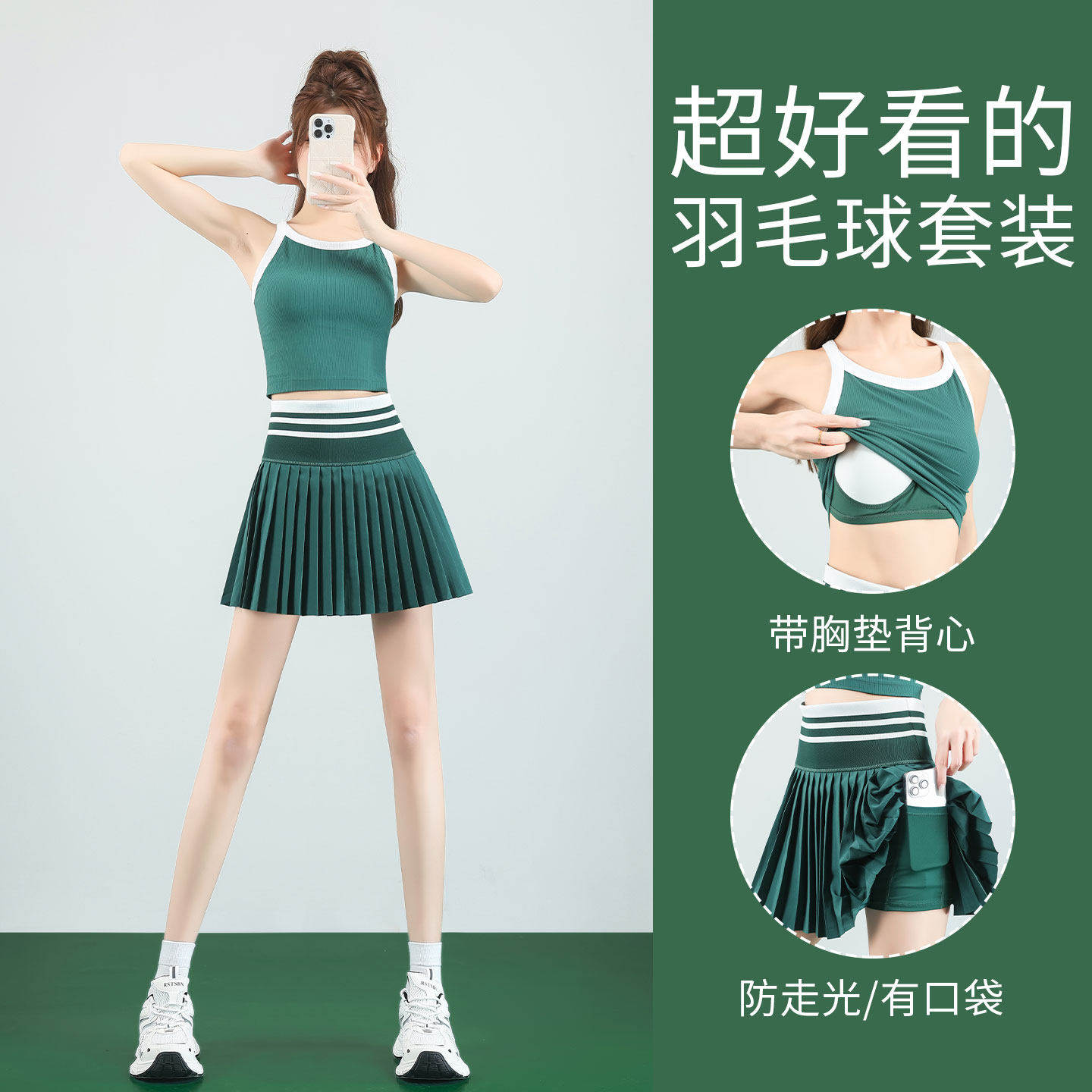 超好看网球运动套装女夏时尚羽毛球服高腰百褶短裙跑步健身速干衣