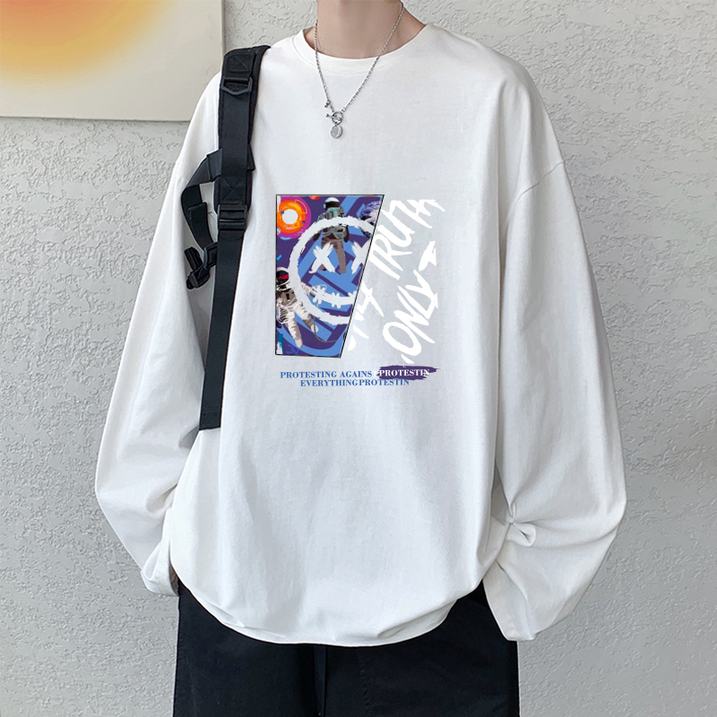 春秋季男生长袖t恤男潮牌纯棉青少年初中学生内搭打底衫上衣薄款