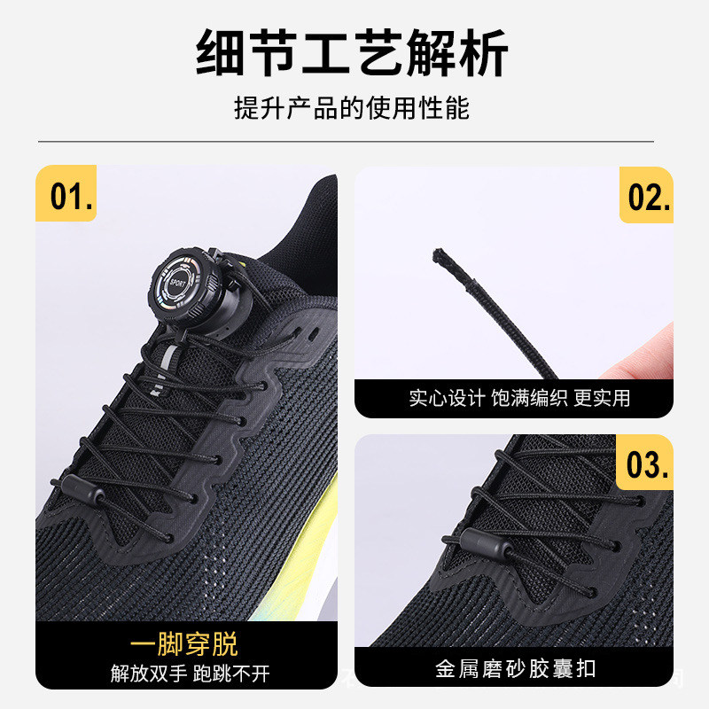 旋转纽扣鞋带懒人免系免绑运动跑鞋黑白色粗鞋带绳旋钮鞋扣固定器