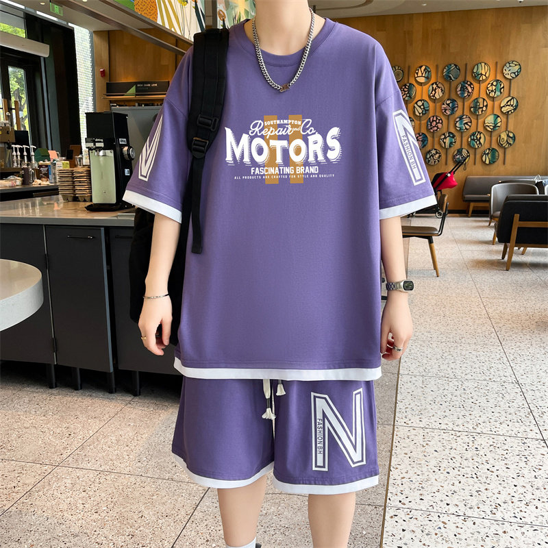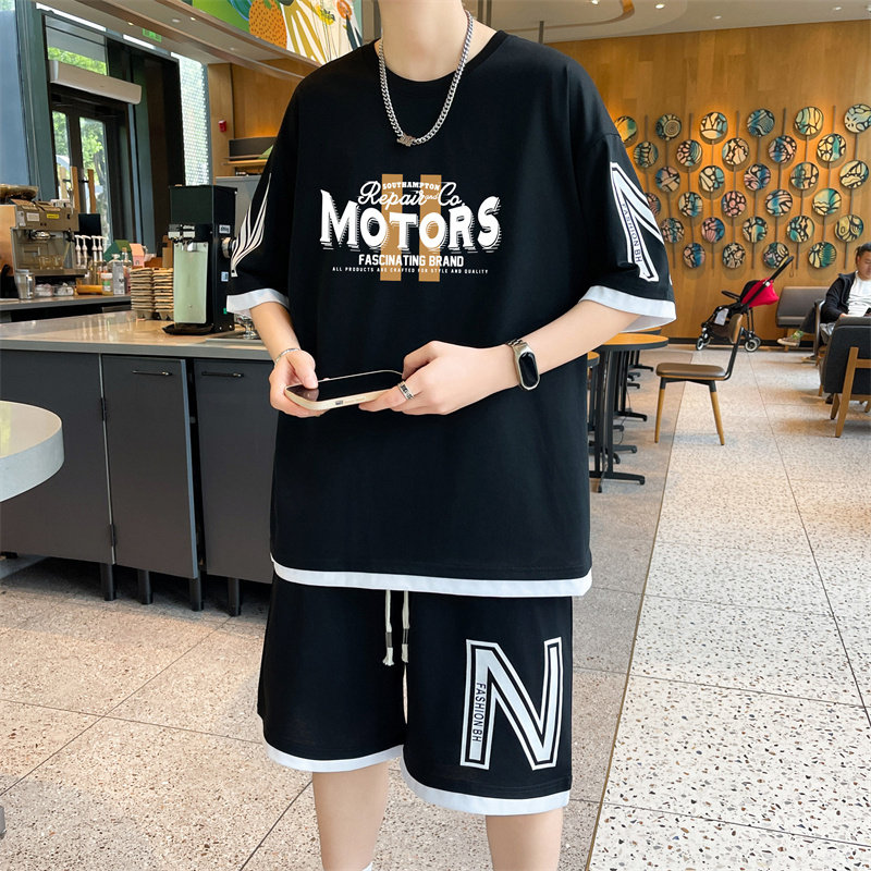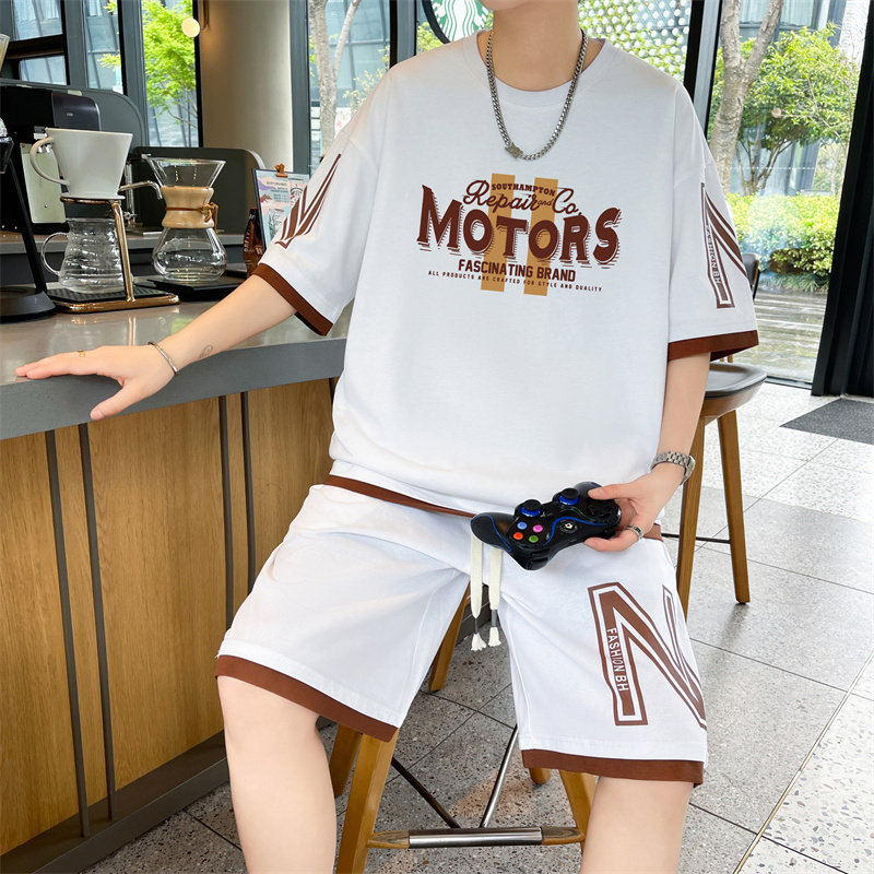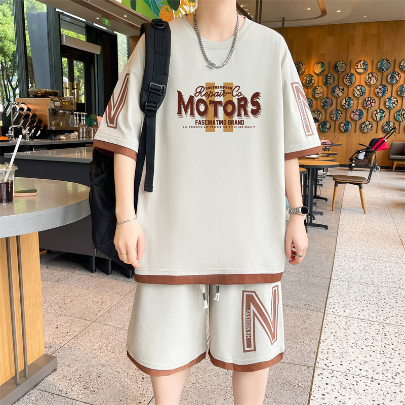 纯棉运动套装男夏季2025新款短袖短裤男生一套搭配帅气青少年T恤