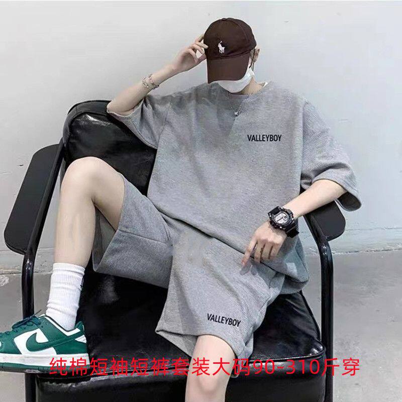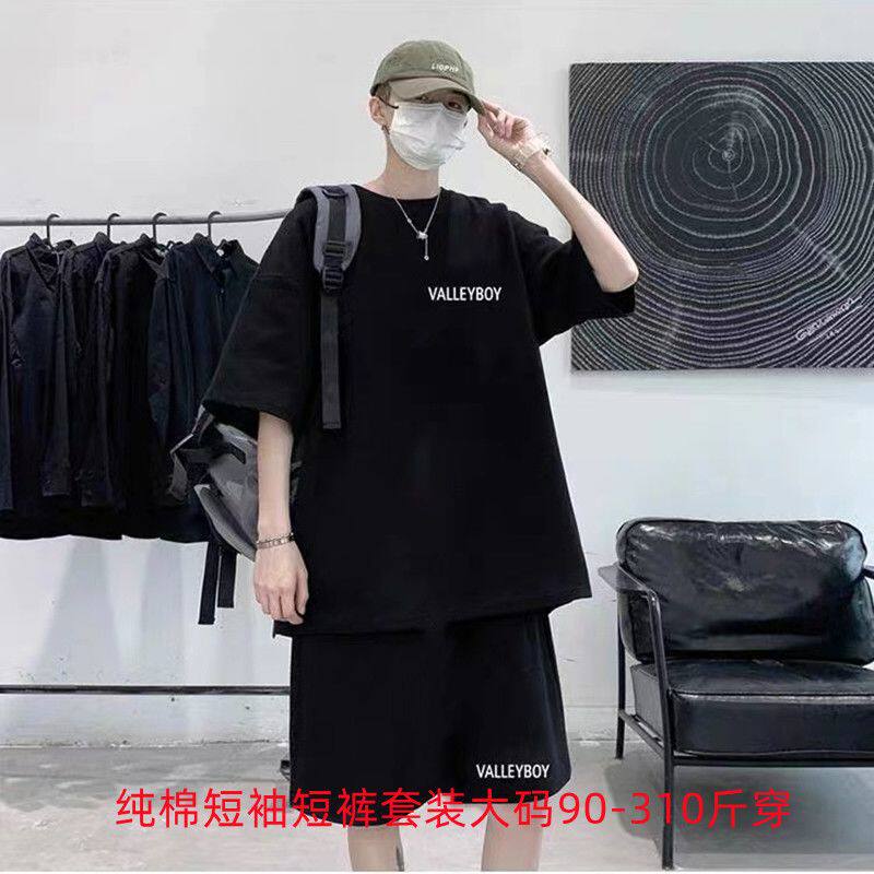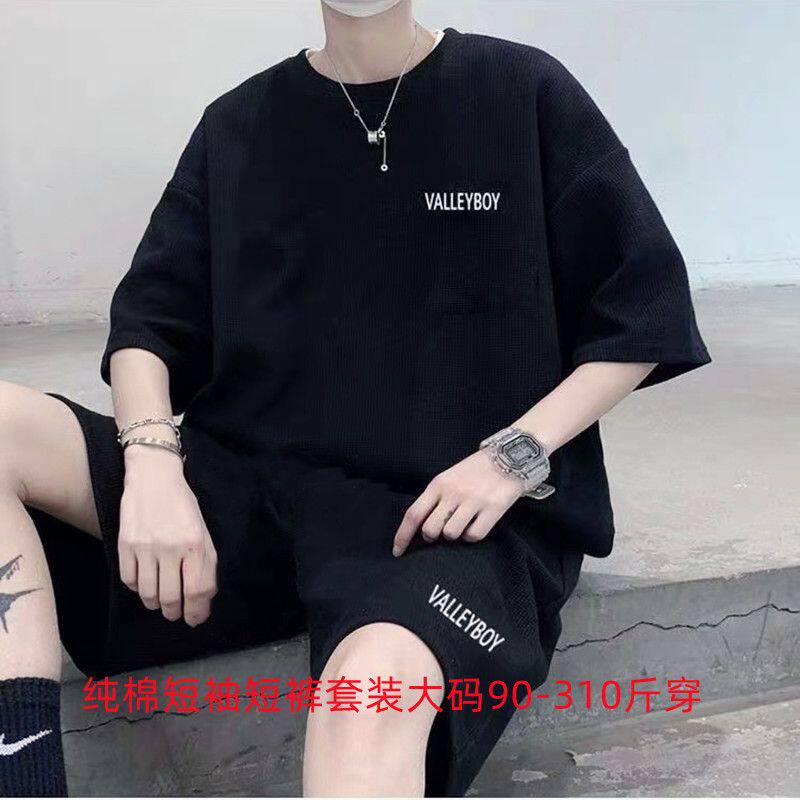 青少年特大码运动套装男士夏季短袖纯棉T恤新款学生宽松帅气ins潮