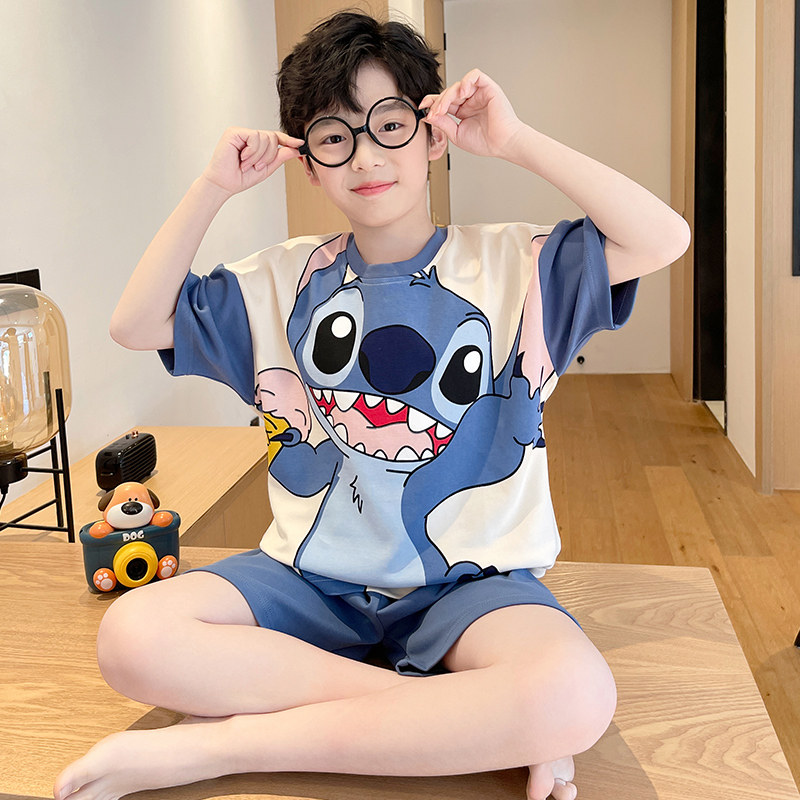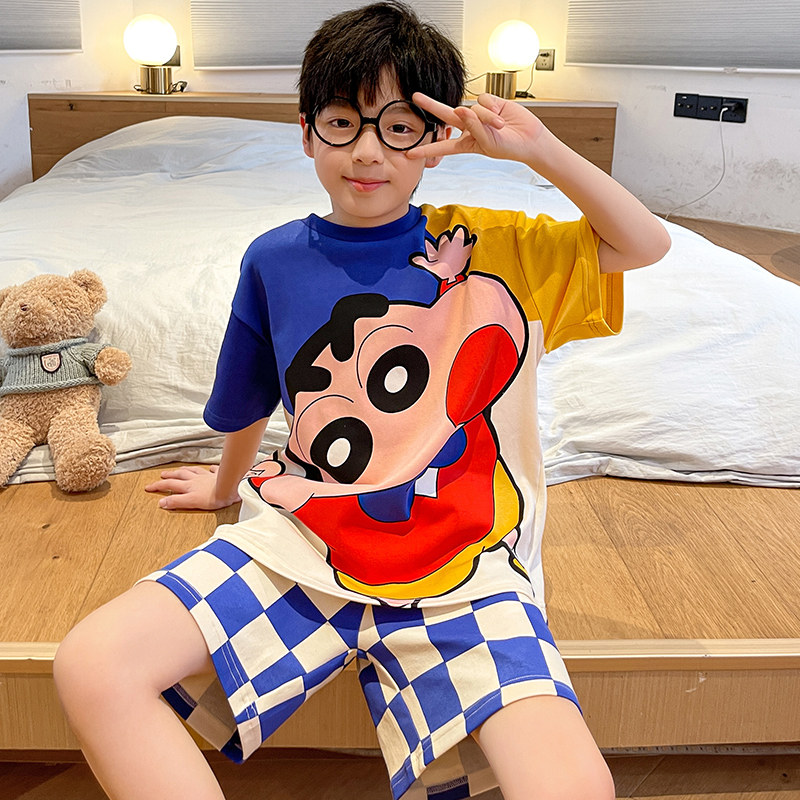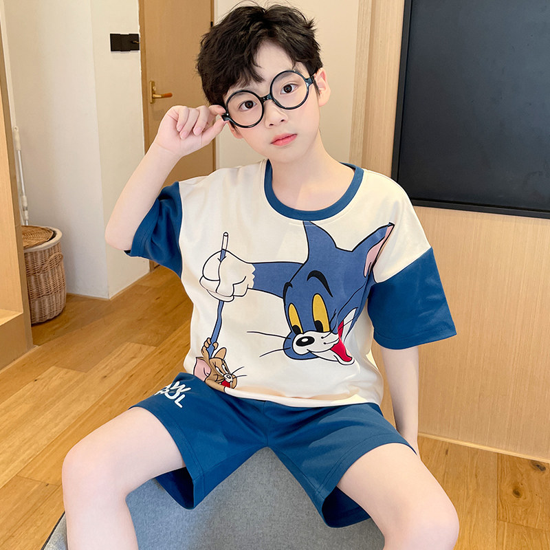 全棉纯棉男童睡衣儿童夏季薄款纯棉短袖套装中大童12岁男孩洋气夏