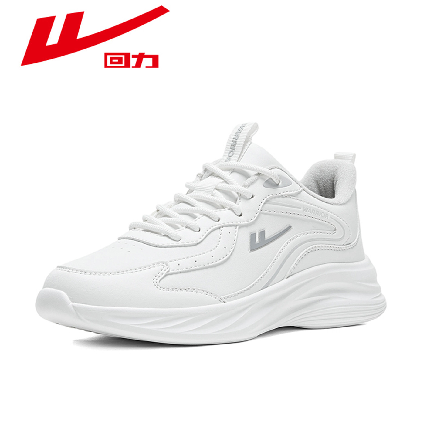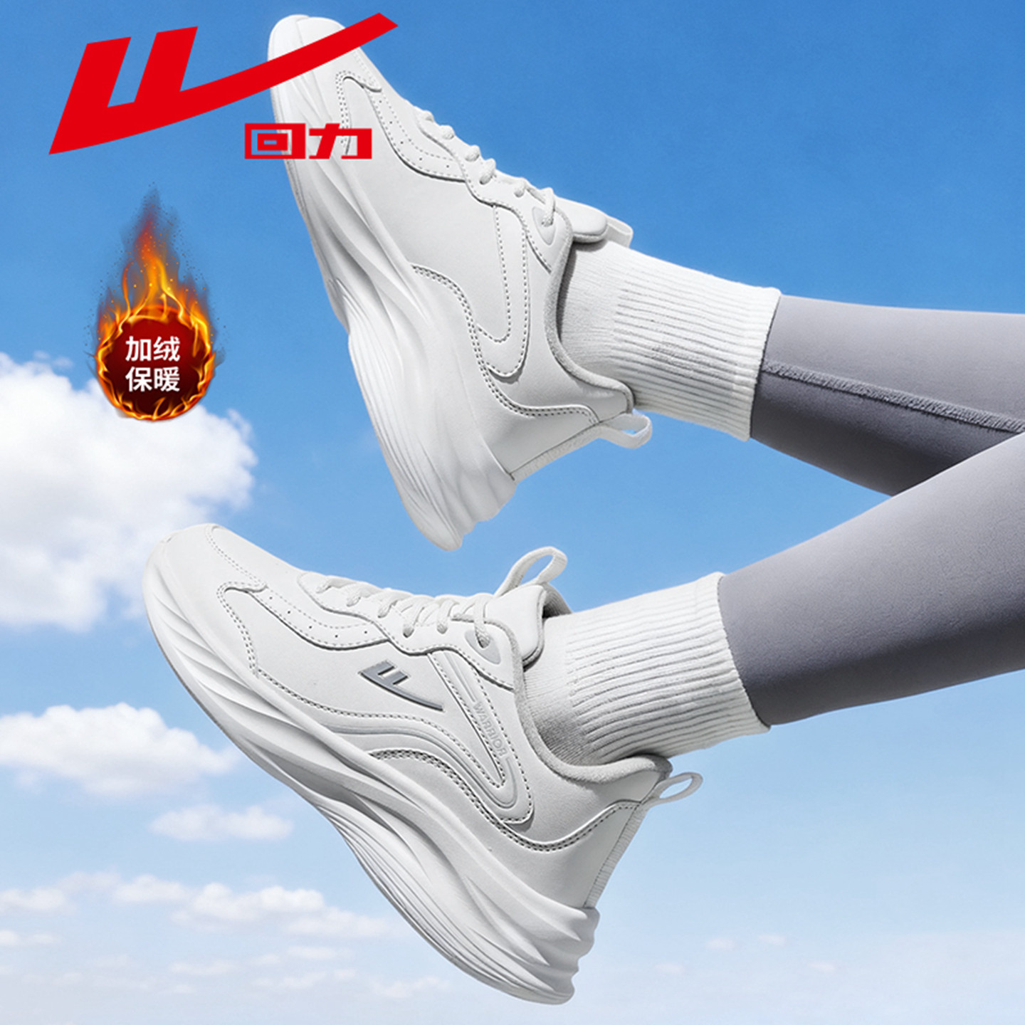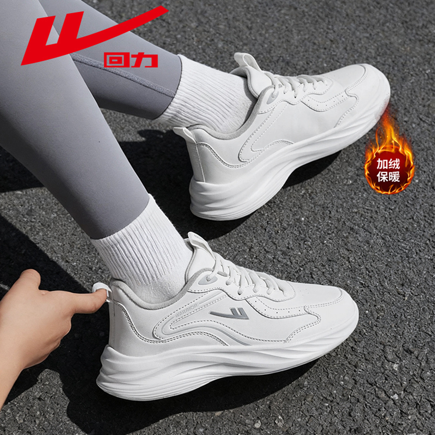 回力女鞋冬季加绒白色运动鞋2025新款轻便保暖棉鞋皮面跑步休闲鞋