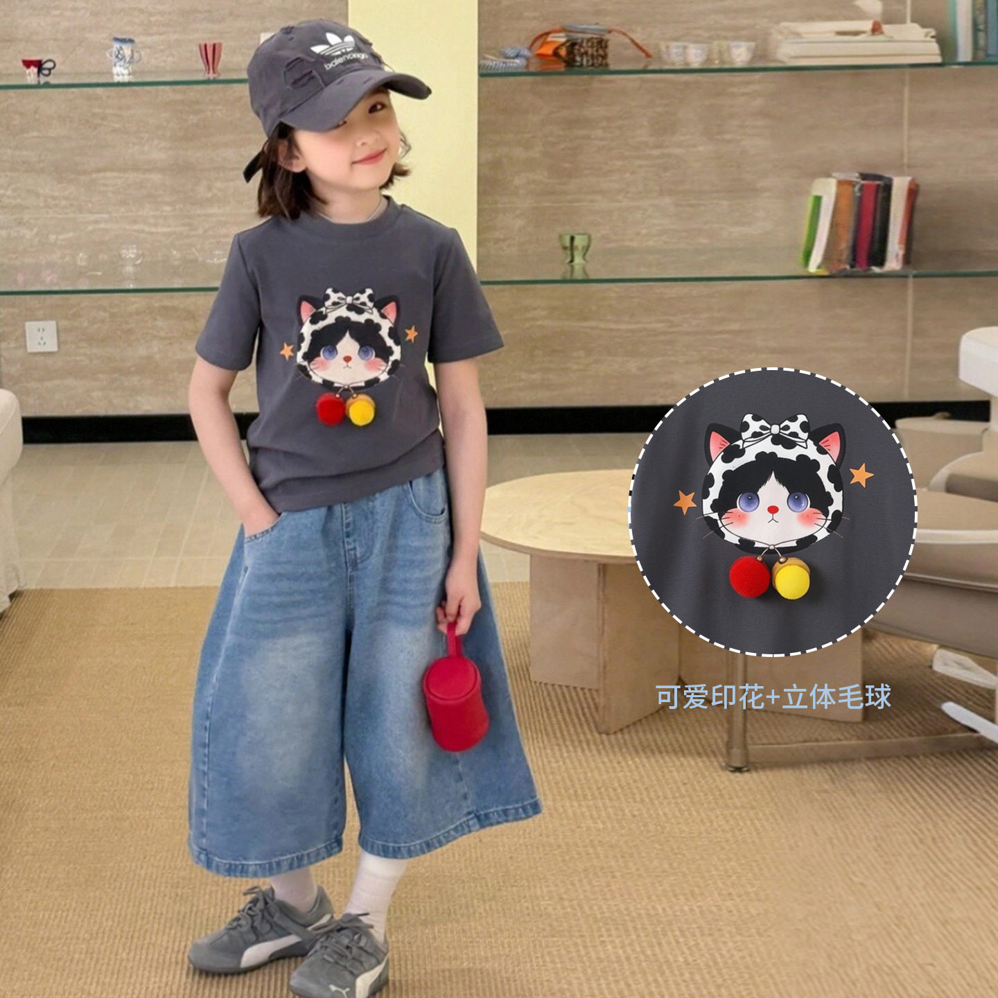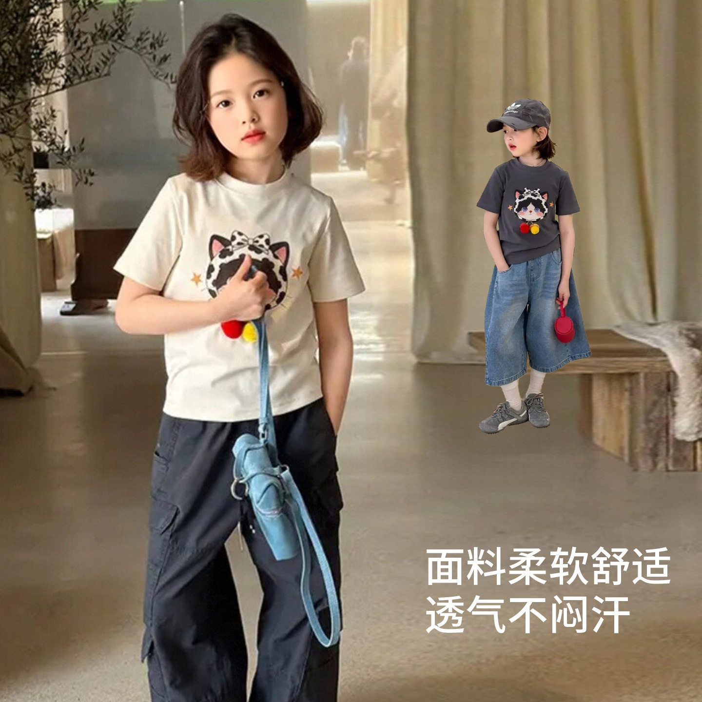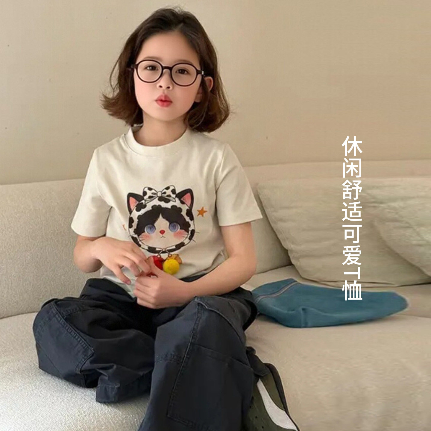 女童短袖t恤2026夏季新款中大童女孩薄款多巴胺印花卡通休闲上衣