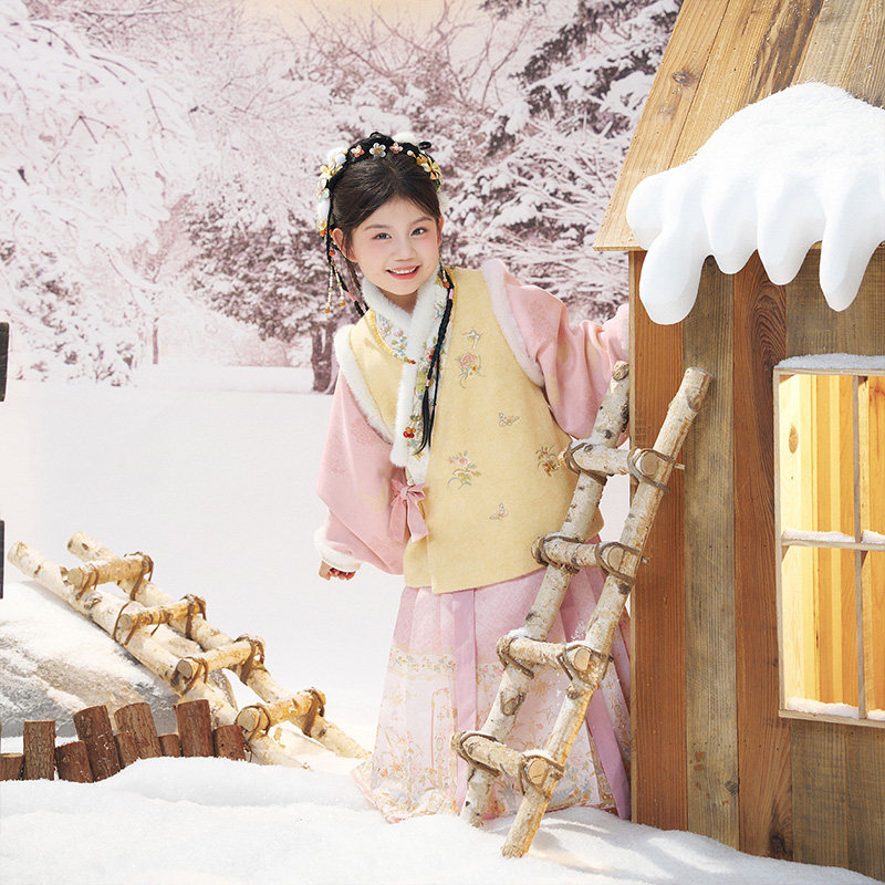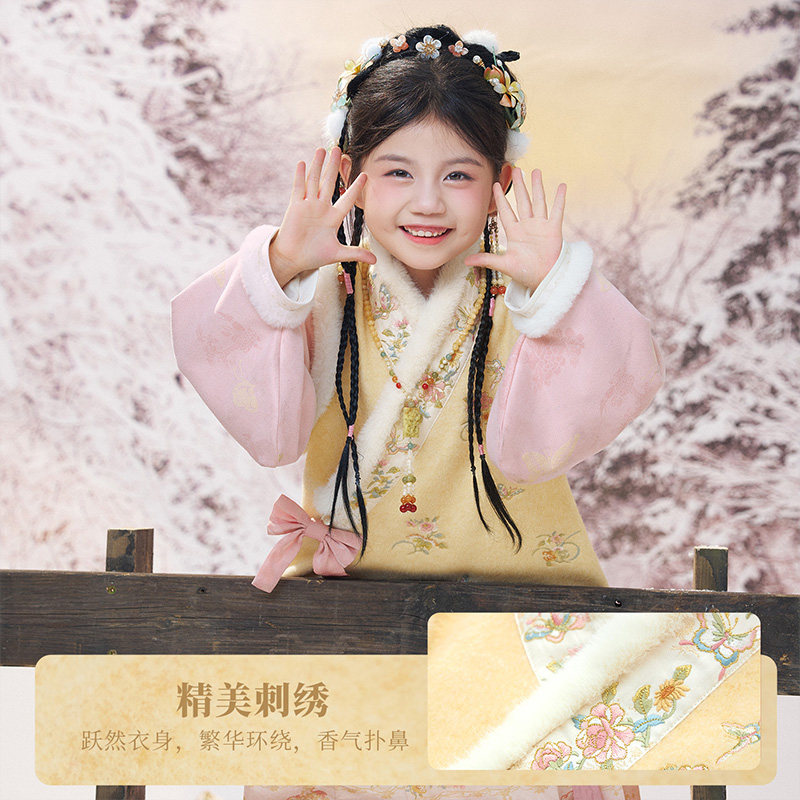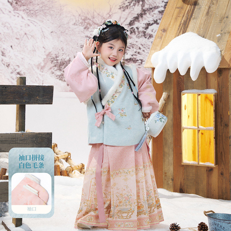 十三余童装[岁朝清梦]明制汉服女童秋冬套装保暖上衣裙子两件套