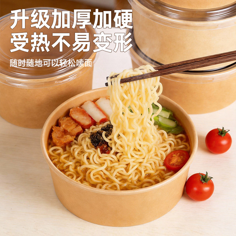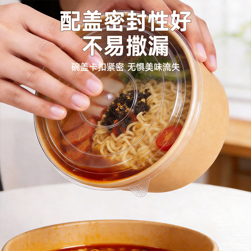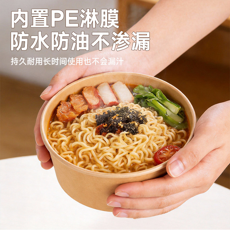一次性牛皮纸圆碗食品级家用加厚泡面纸碗水果沙拉餐饮饭盒打包盒