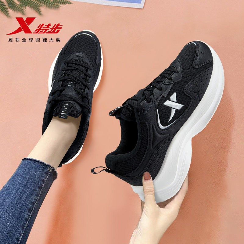 特步女鞋官方旗舰店正品轻便软底黑色运动鞋女健身减震跑步鞋跳绳